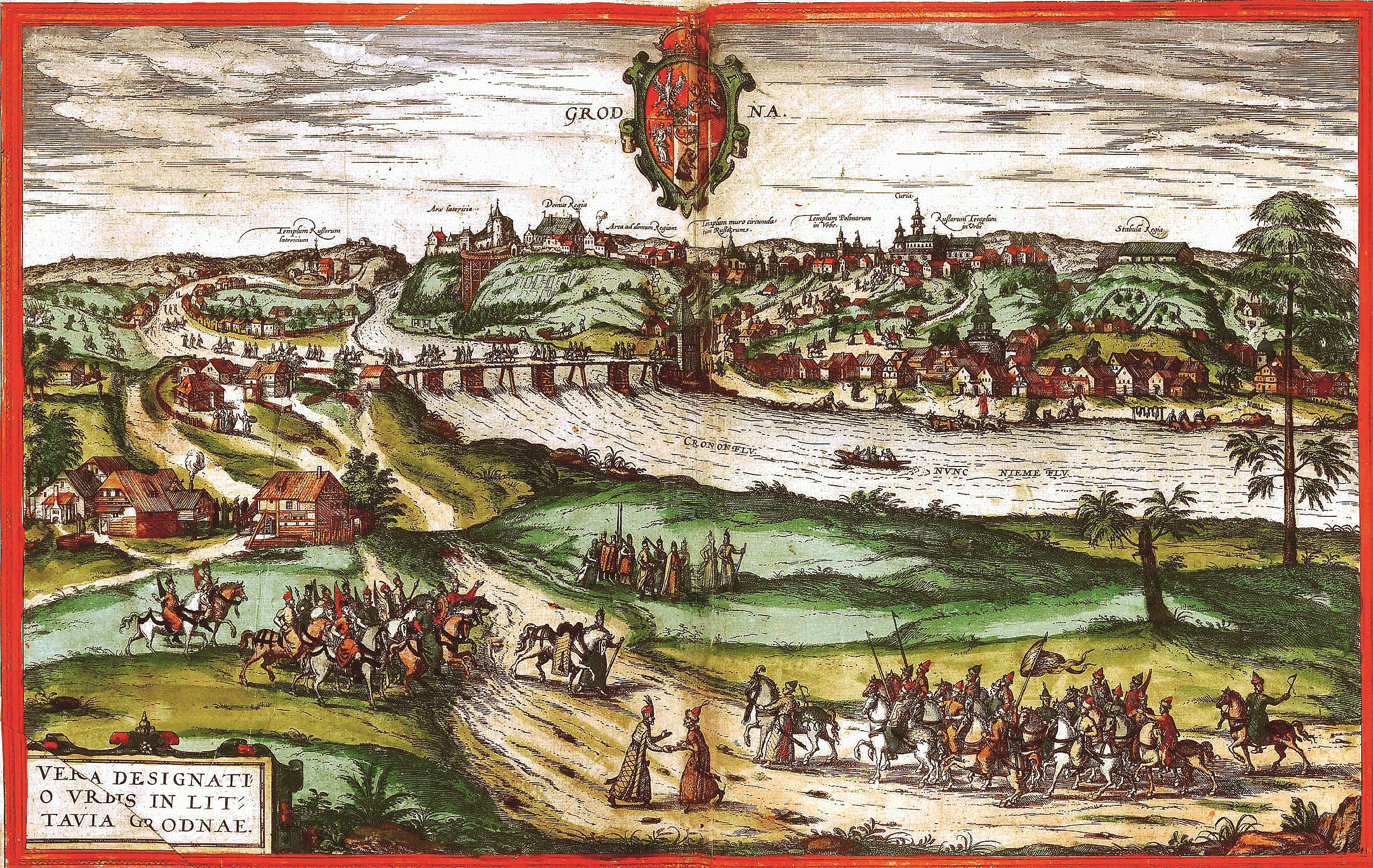 Вид г. Гродно с изображением встречи московских послов в 1567 г.