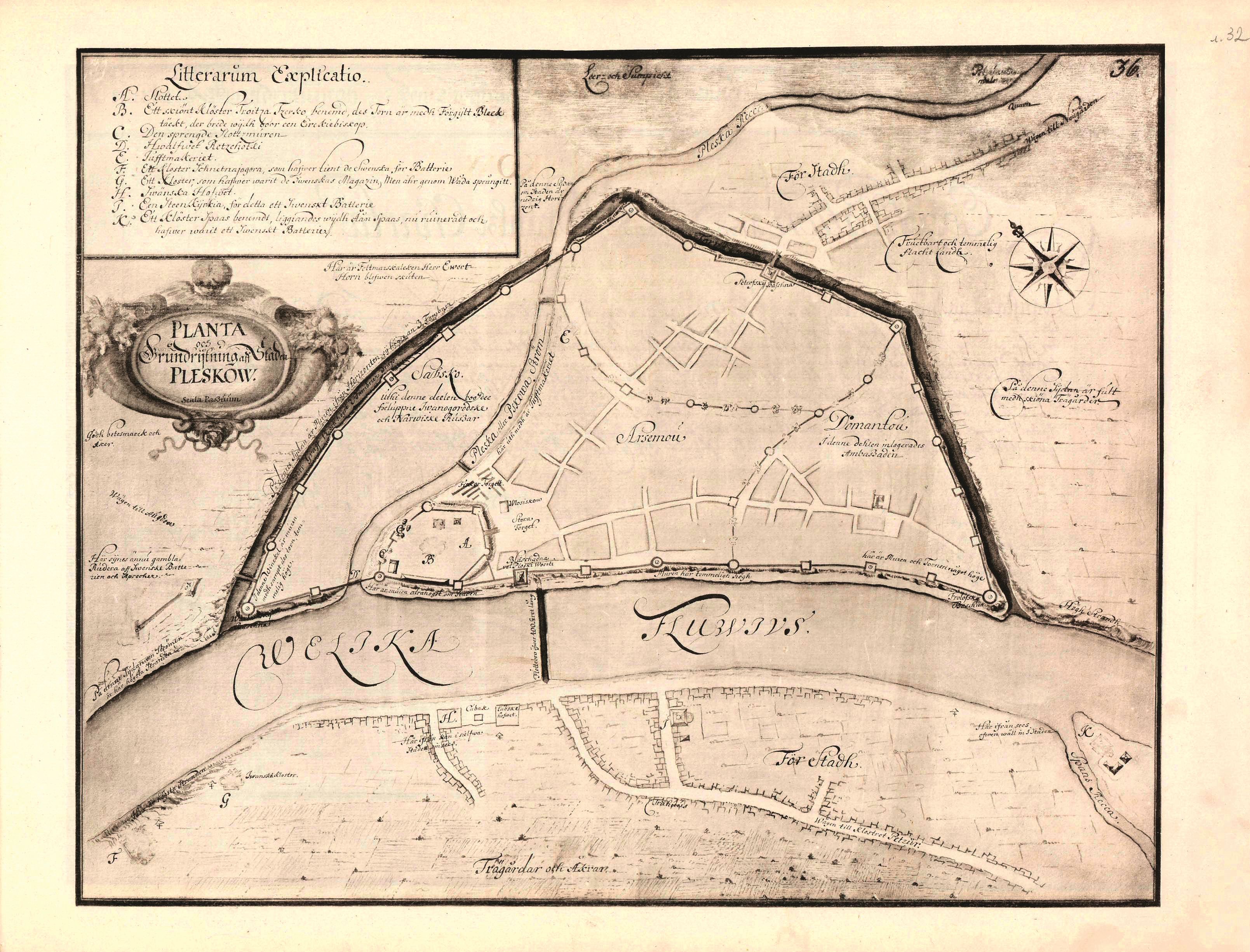 План Пскова, составленный шведским офицером Э. Пальмквистом в 1673 г.