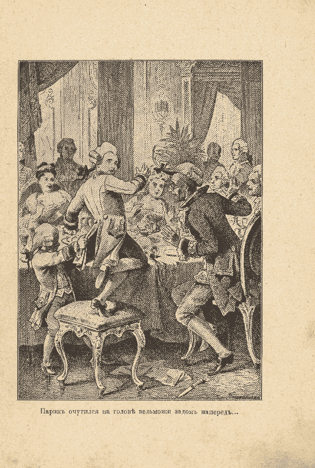 Парик очутился на голове вельможи задом наперед… Иллюстрация в книге