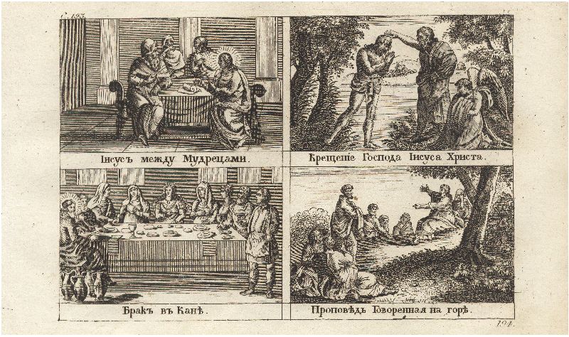 Иисус между мудрецами. Крещение Господа Иисуса Христа. Брак в Канне. Проповедь, говоренная на горе. Иллюстрации к книге