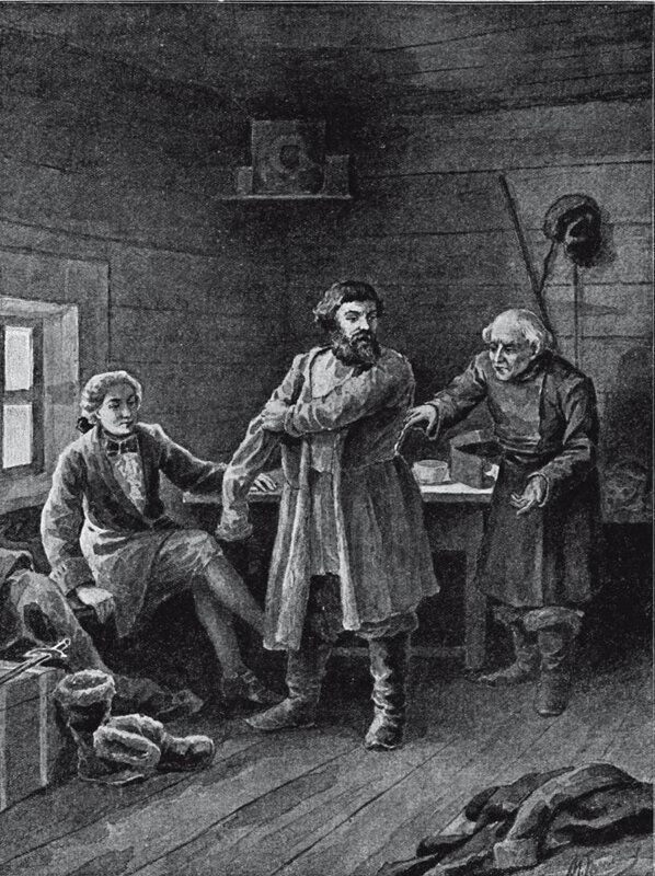 Литературный альбом. «Капитанская дочка» А. С. Пушкина. Первая встреча Гринева с Пугачевым на постоялом дворе.