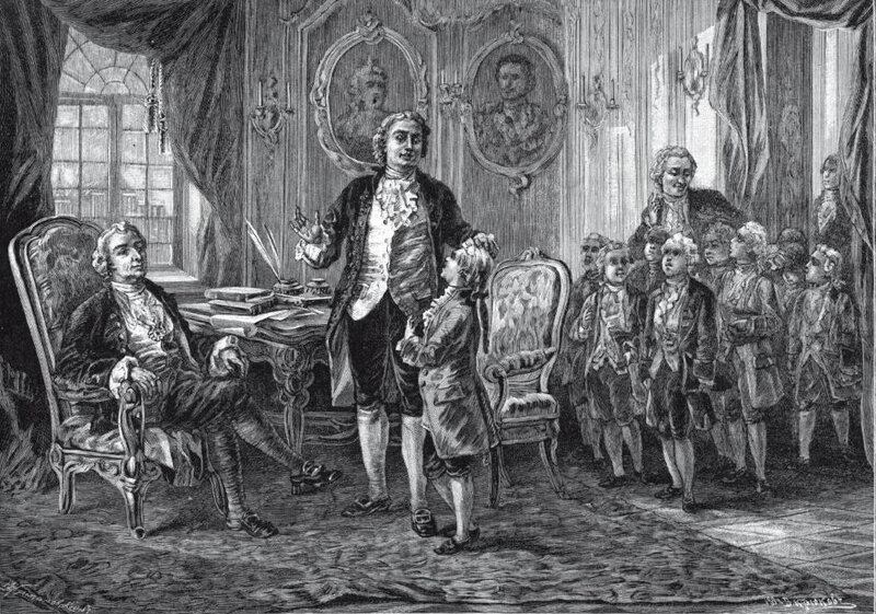 Юноша Фонвизин встречается у И. И. Шувалова с Ломоносовым.