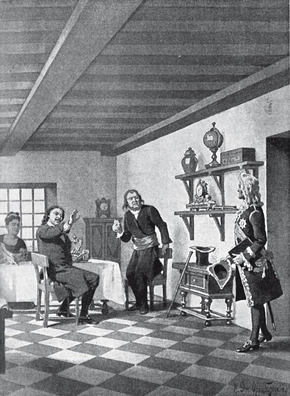 Пётр Великий угощает шкипера первого торгового фрисландского судна, пришедшего с товарами в Петербург