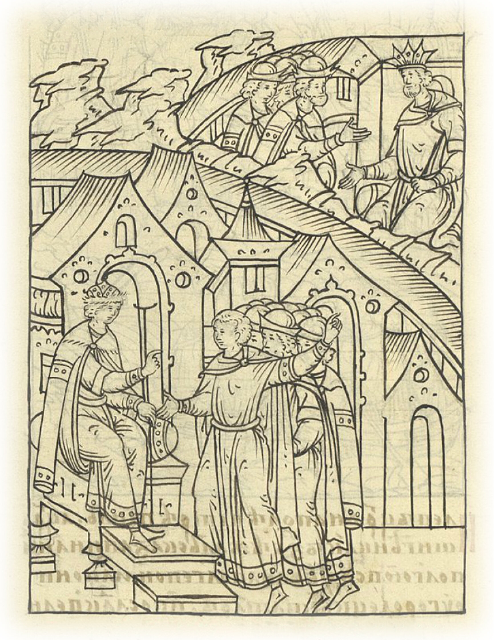 Ругодивские посадники Яким и Захар приезжают в Москву. Воеводы царя Ивана Васильевича Алексей Адашев и Иван Михайлов сообщают им, что государь пожалует их, если сдадут его воеводам помимо Ругодива Вышгород.