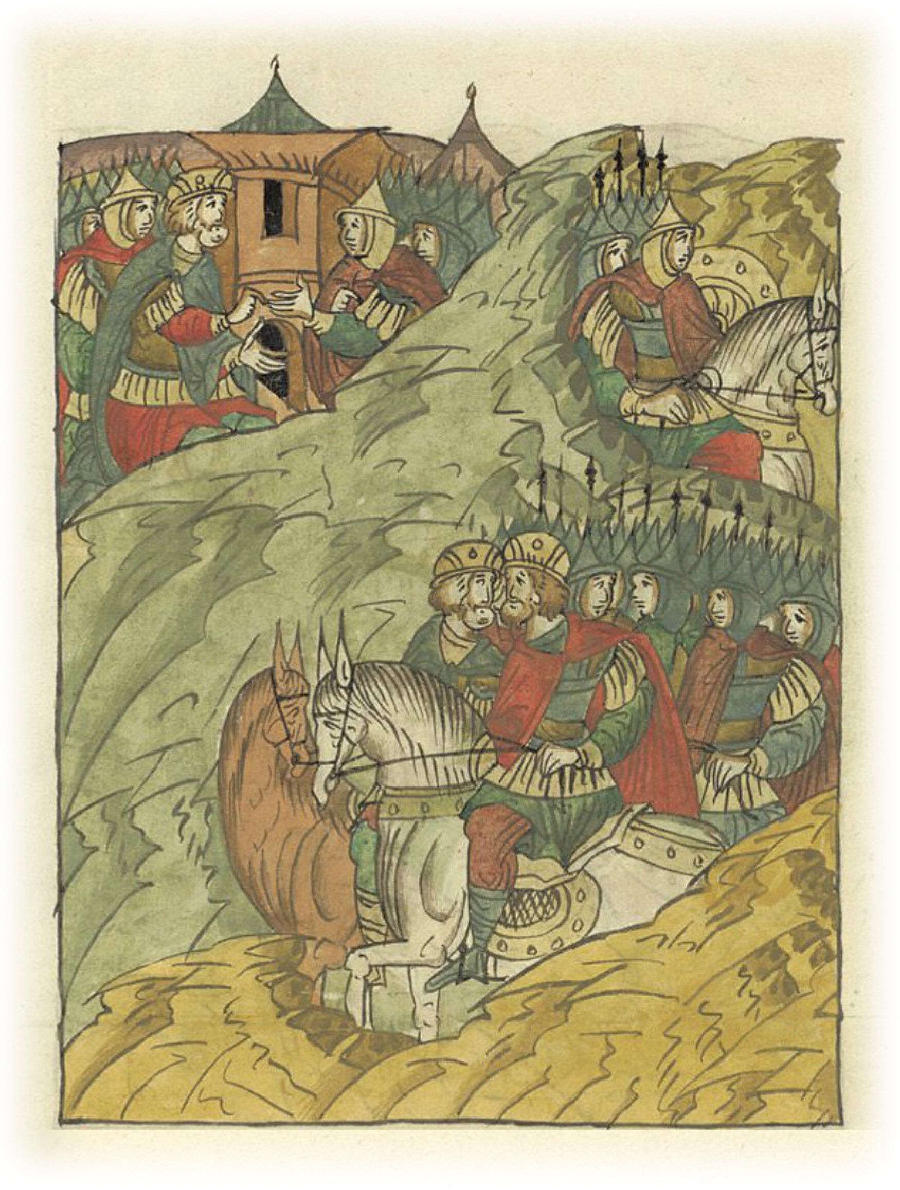 и послал мужей своих избранных в дозор. Они выехали за пятнадцать верст от города Твери и пришли туда, где стояли князья с новгородцами.
