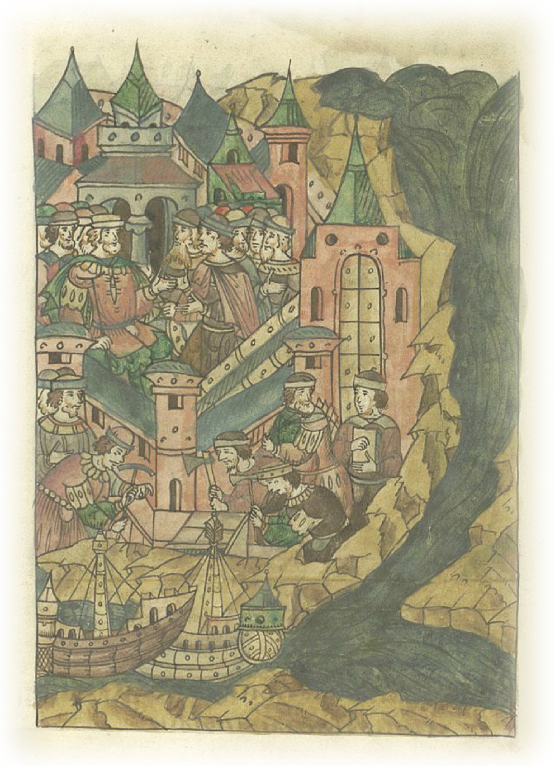 Языки говорят воеводам царя Ивана Васильевича, что магистр окопался большим рвом вокруг города Рындола, бьет из пушек и пищалей и приступает к Рындолу.