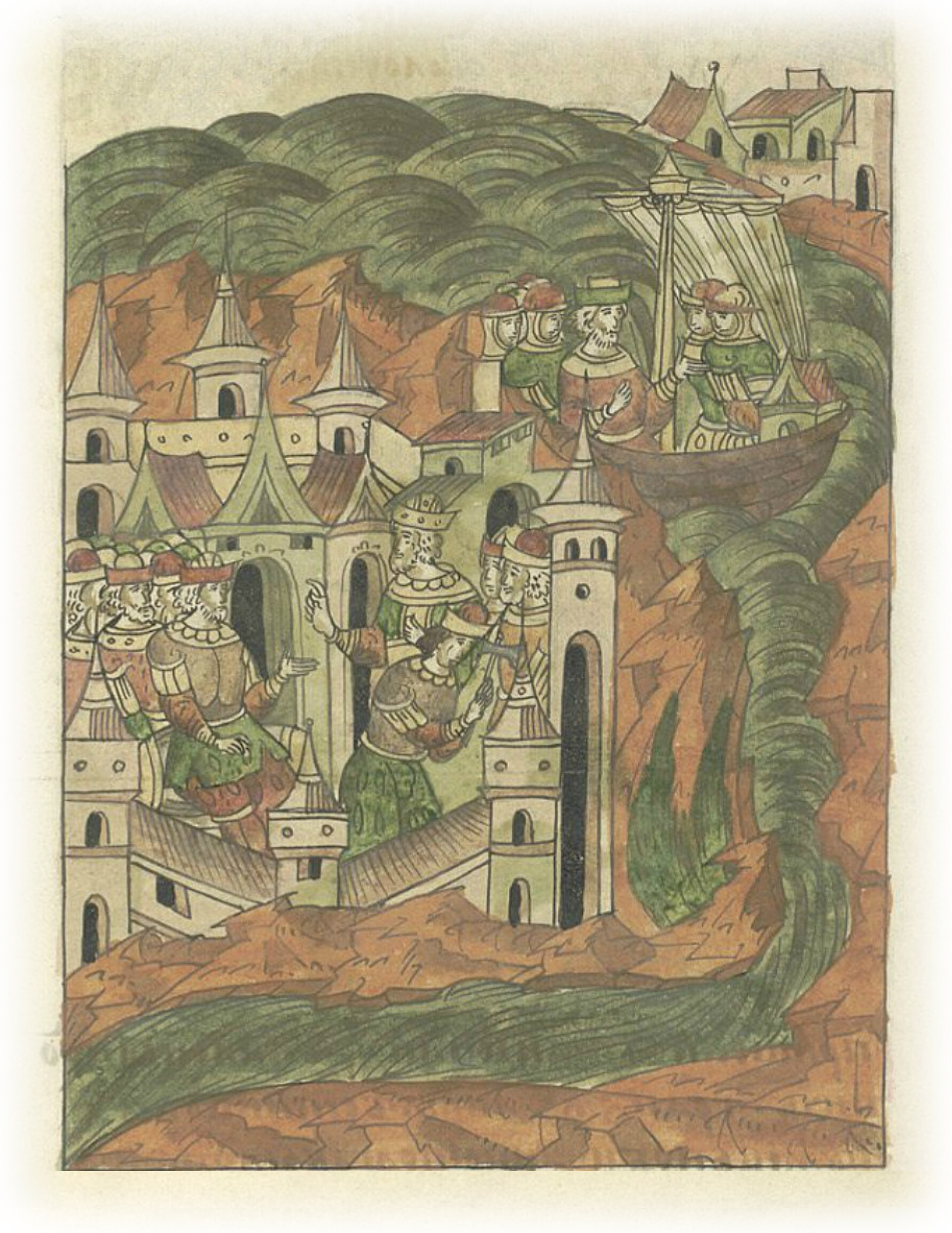Ругодивские посадники Яким и Захар приезжают в Москву. Воеводы царя Ивана Васильевича Алексей Адашев и Иван Михайлов сообщают им, что государь пожалует их, если сдадут его воеводам помимо Ругодива Вышгород.