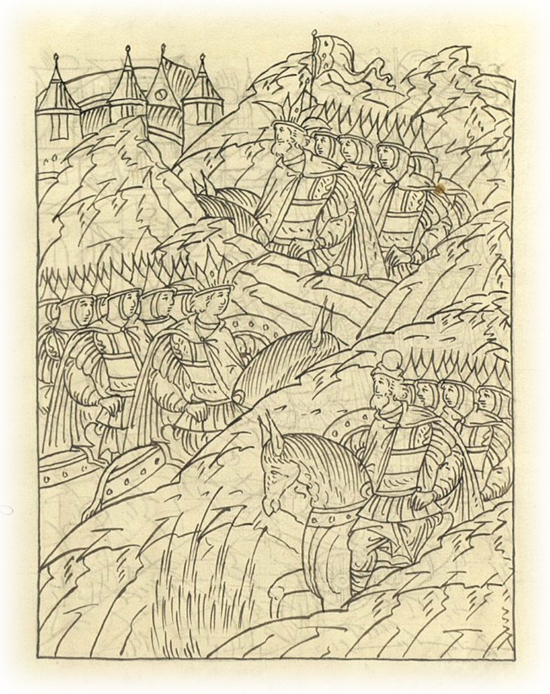 Языки говорят воеводам царя Ивана Васильевича, что магистр окопался большим рвом вокруг города Рындола, бьет из пушек и пищалей и приступает к Рындолу.