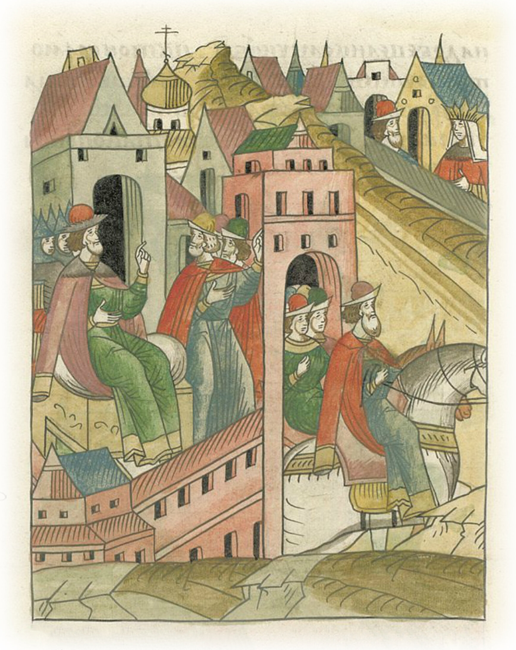 Ругодивские посадники Яким и Захар приезжают в Москву. Воеводы царя Ивана Васильевича Алексей Адашев и Иван Михайлов сообщают им, что государь пожалует их, если сдадут его воеводам помимо Ругодива Вышгород.