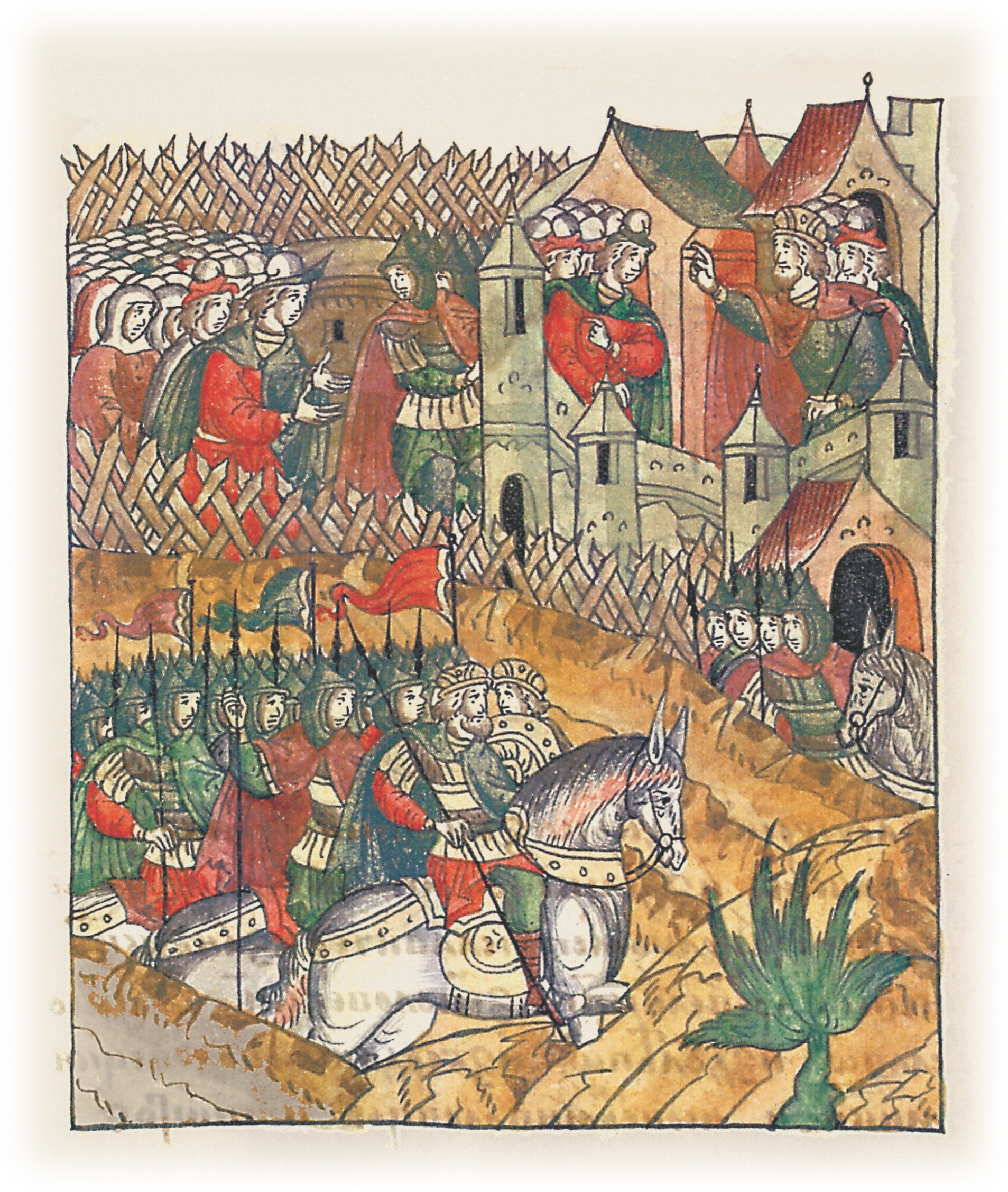Также послал вызнать силу пришедших ратников; и увидел силу бесчисленную, и христиан, и половцев, и повелели людям всем, сидящим в остроге, бежать из острога в детинец.