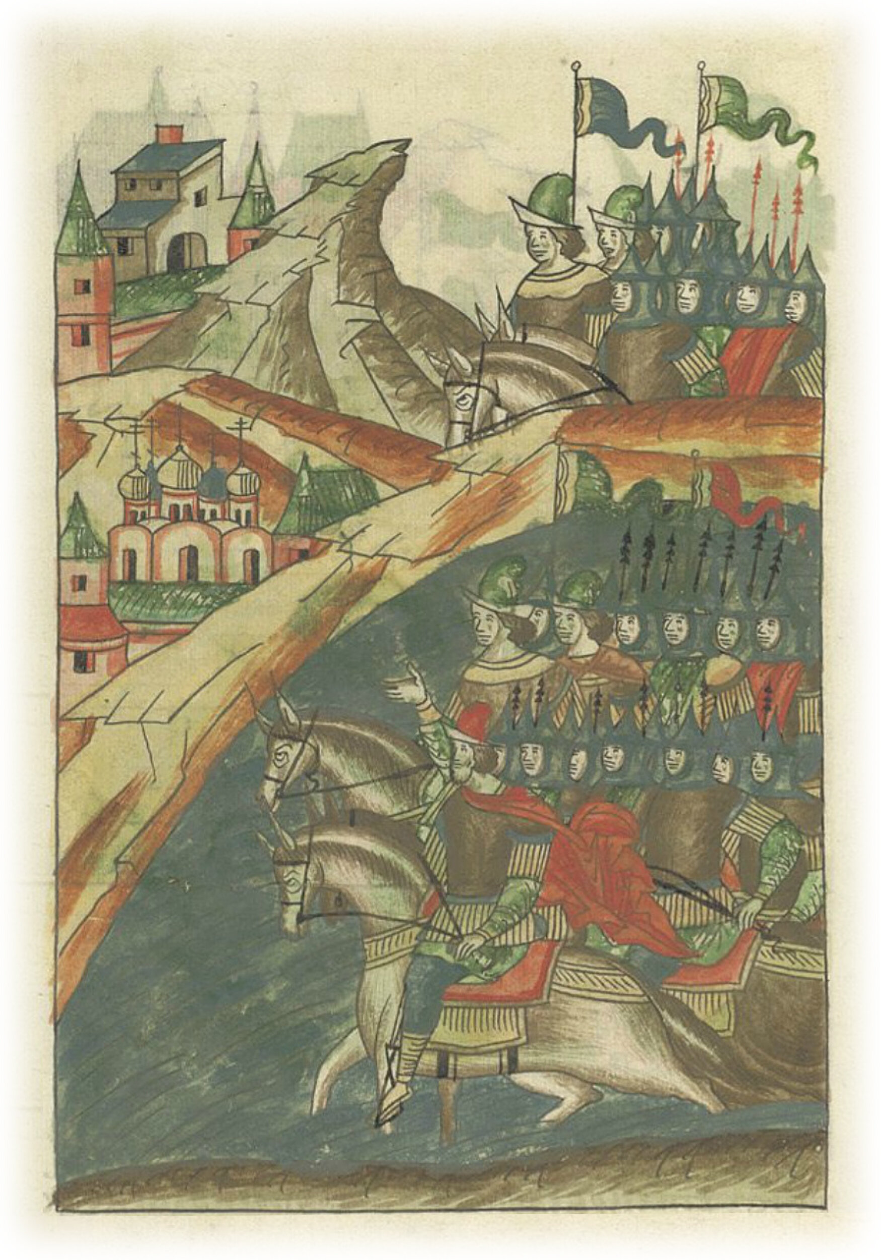 Воеводы царя Ивана Васильевича, разделившись, идут в погоню за царем Емгурчеем.