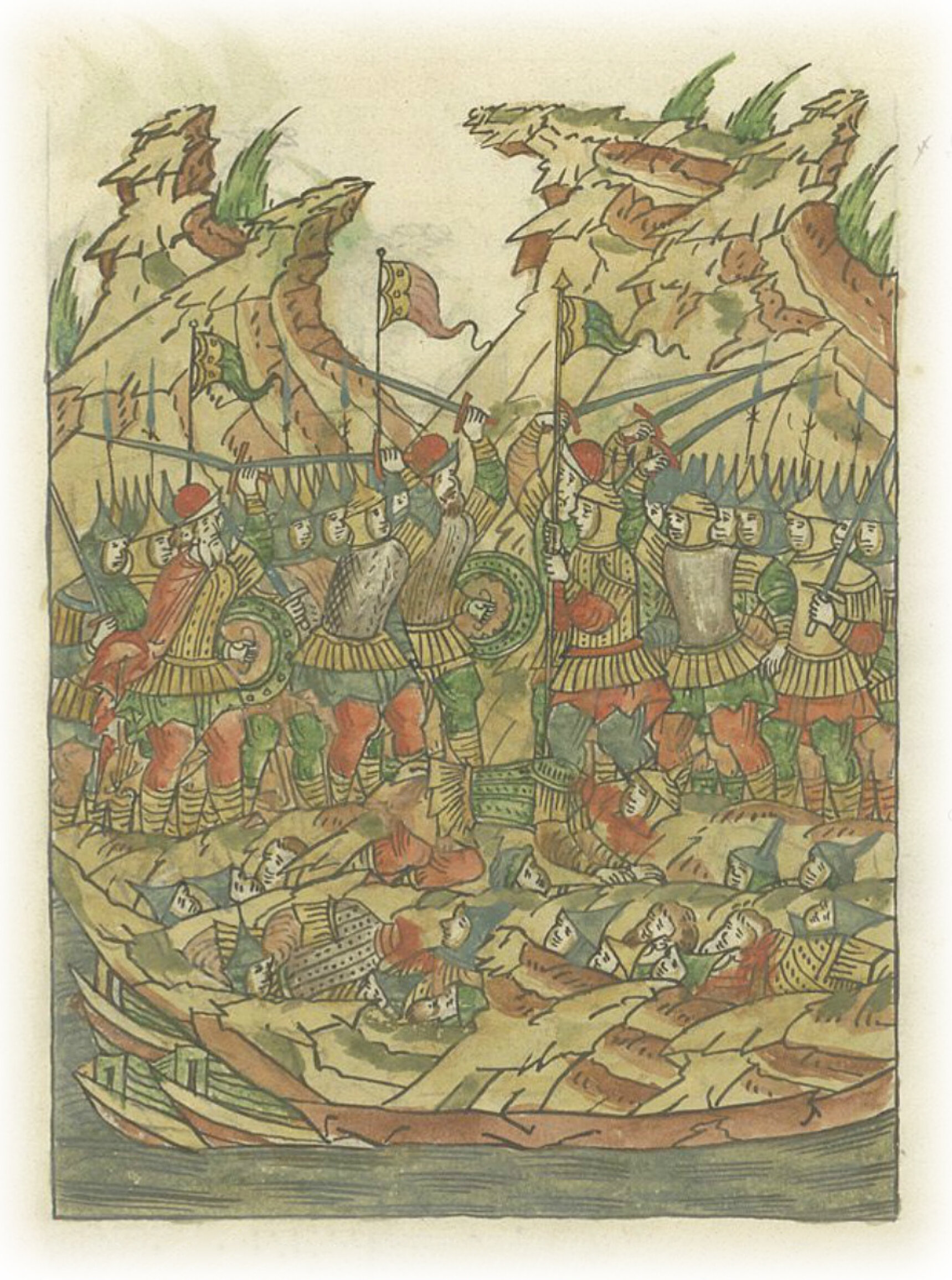 И трех знаменщиков под ним убили: когда убили первого, другой подхватил;