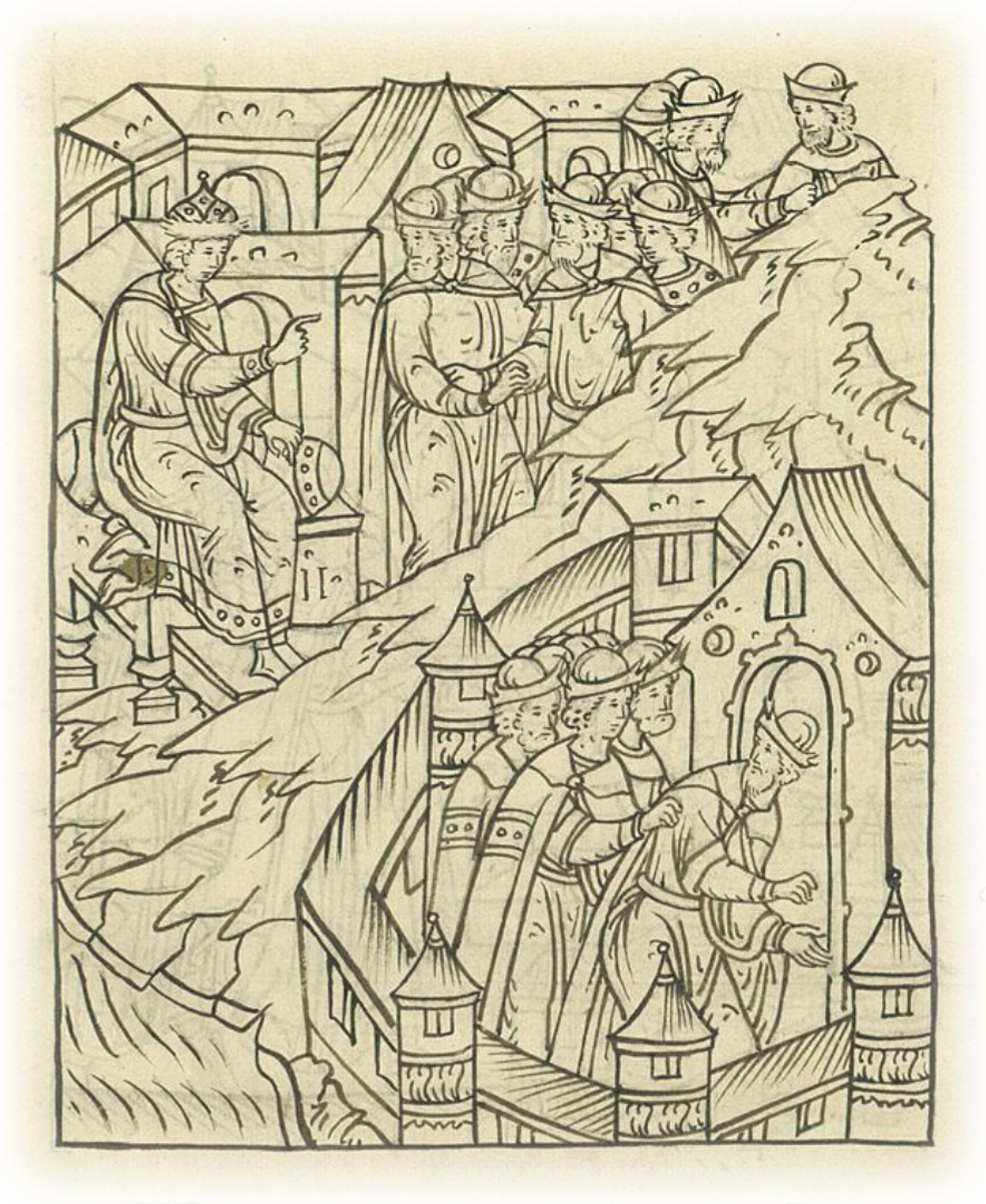 Ругодивские посадники Яким и Захар приезжают в Москву. Воеводы царя Ивана Васильевича Алексей Адашев и Иван Михайлов сообщают им, что государь пожалует их, если сдадут его воеводам помимо Ругодива Вышгород.