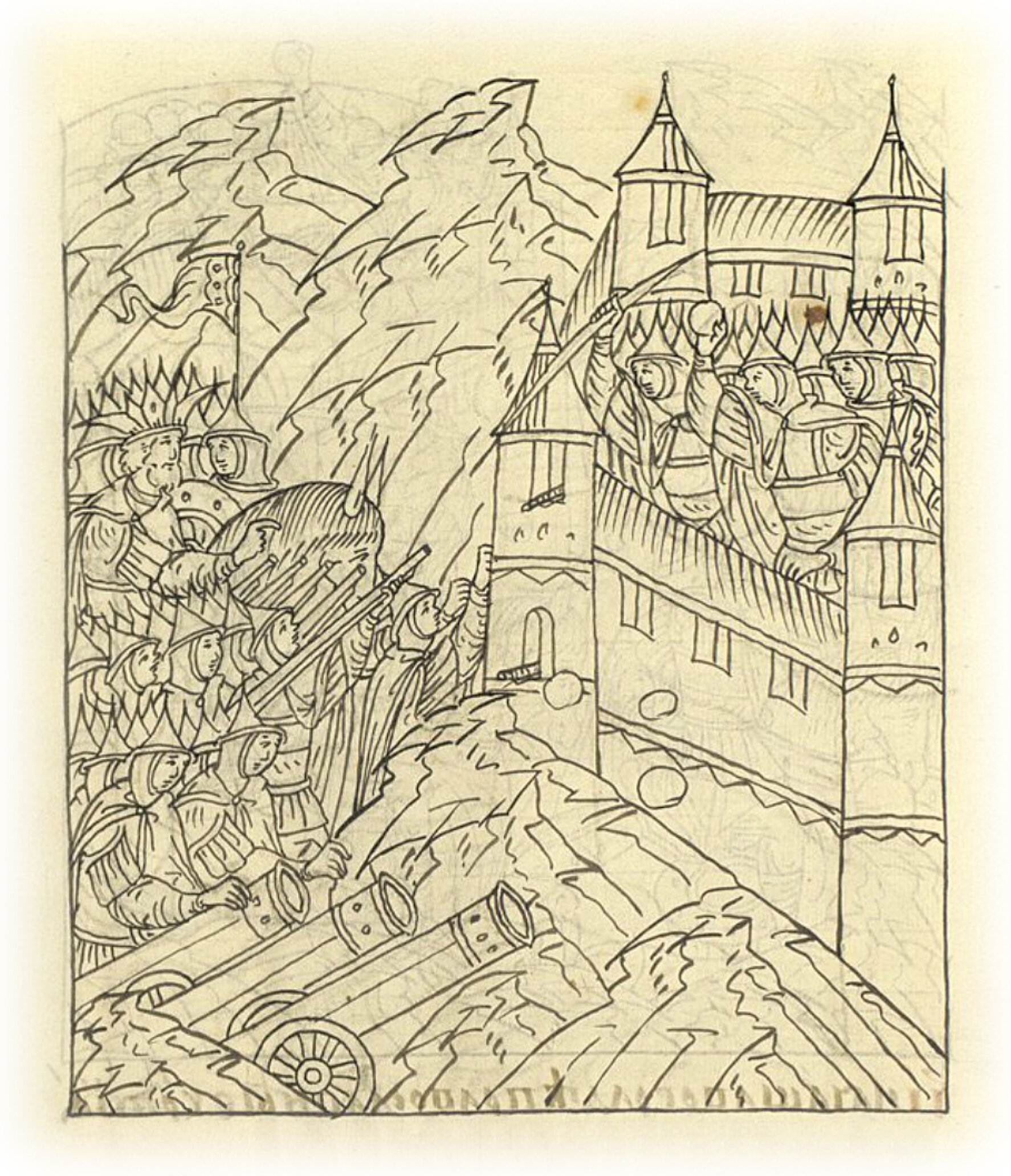 Наутро же в четверг хотели нечестивые свое желание совершить, видя немногих людей в городе, велели к городу приступать с пушками и пищалями.