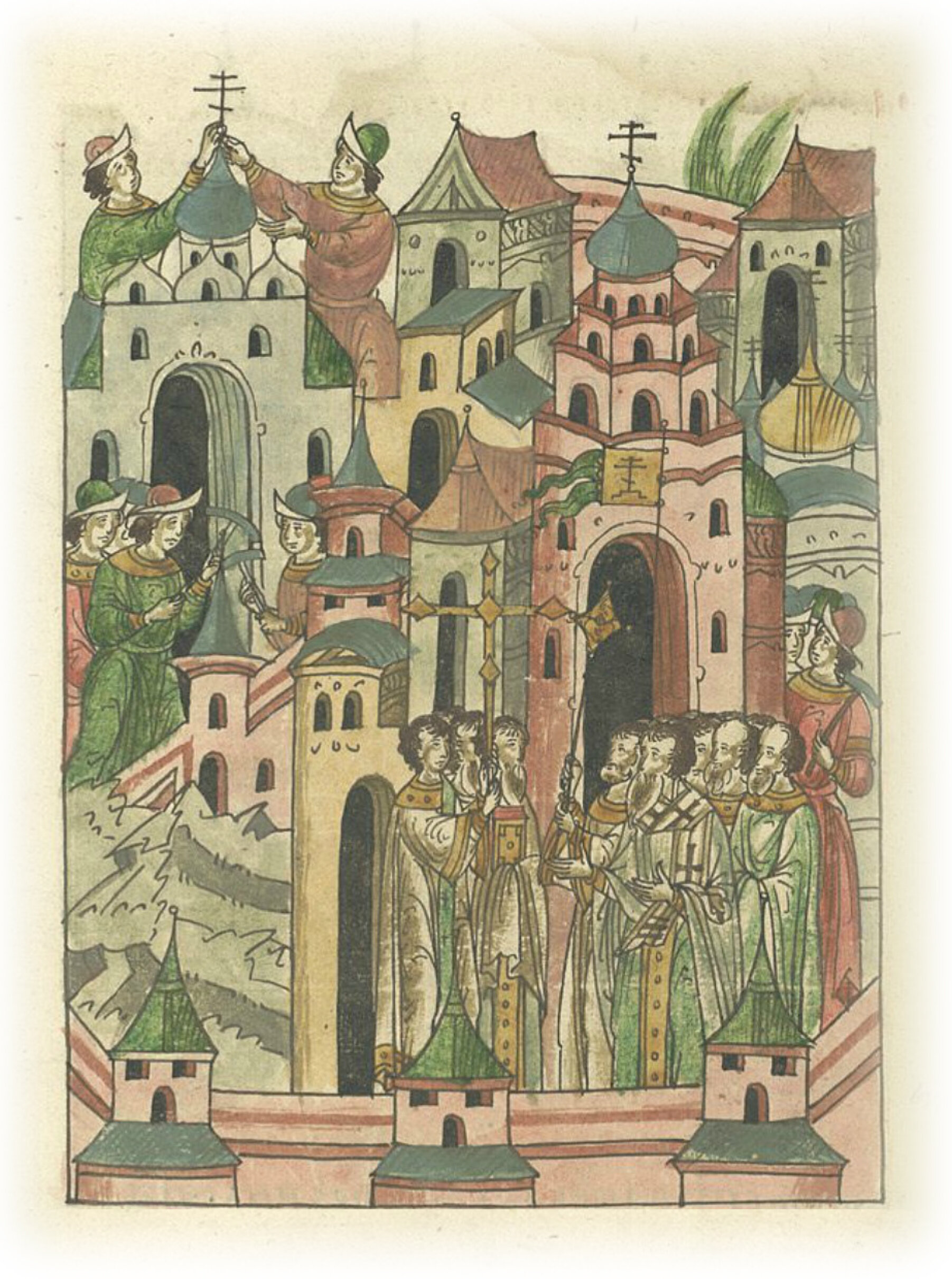 Построение и освящение в Москве церкви Иоанна Лествичника и церкви во имя поклонения честных вериг святого Петра.