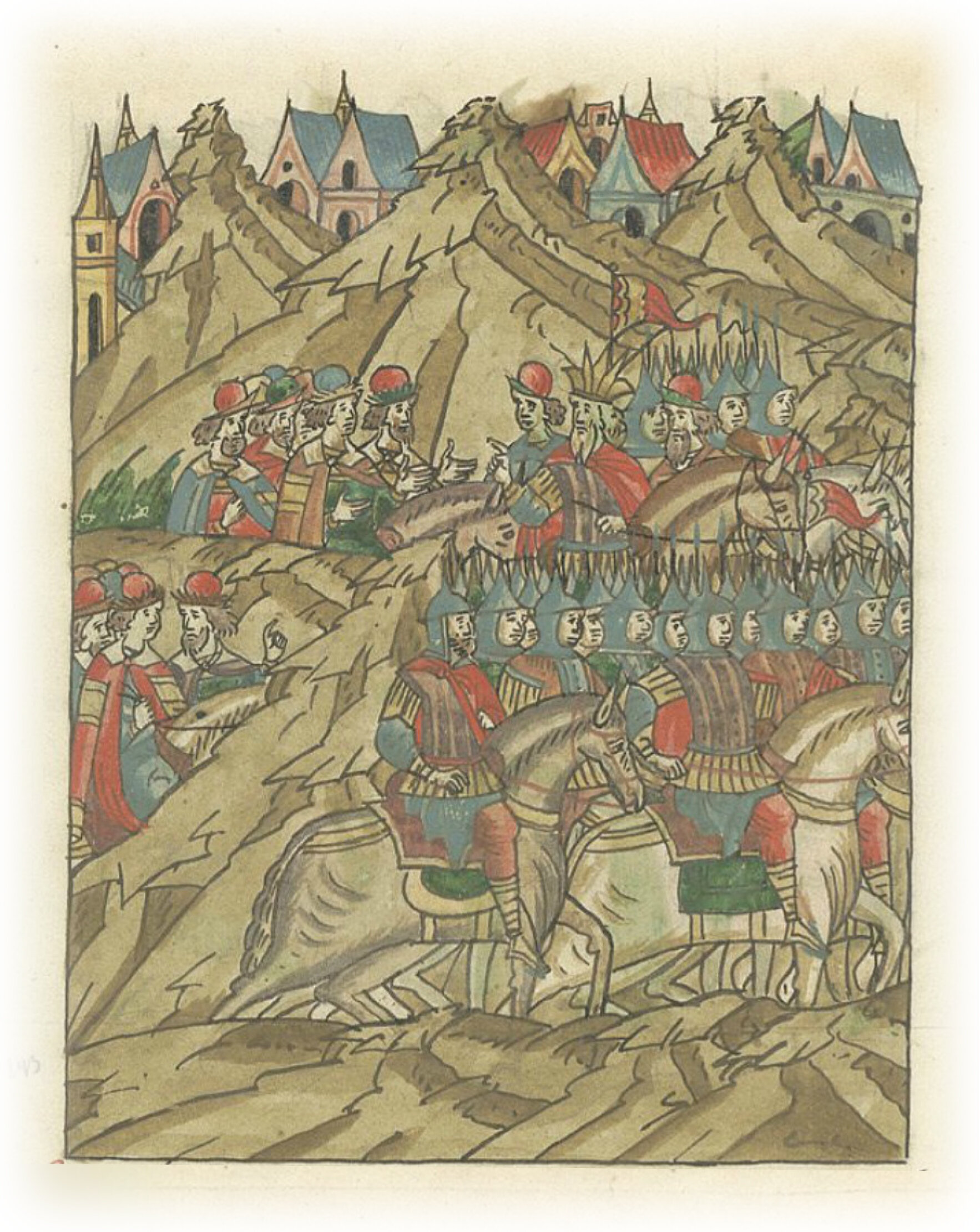 Языки говорят воеводам царя Ивана Васильевича, что магистр окопался большим рвом вокруг города Рындола, бьет из пушек и пищалей и приступает к Рындолу.