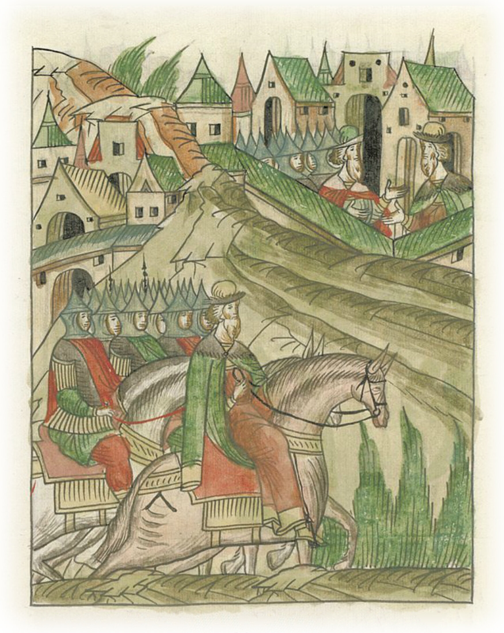 Языки говорят воеводам царя Ивана Васильевича, что магистр окопался большим рвом вокруг города Рындола, бьет из пушек и пищалей и приступает к Рындолу.
