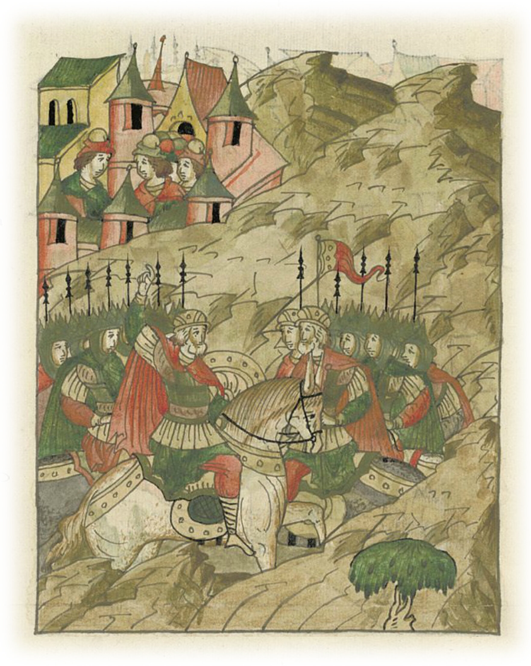 Языки говорят воеводам царя Ивана Васильевича, что магистр окопался большим рвом вокруг города Рындола, бьет из пушек и пищалей и приступает к Рындолу.