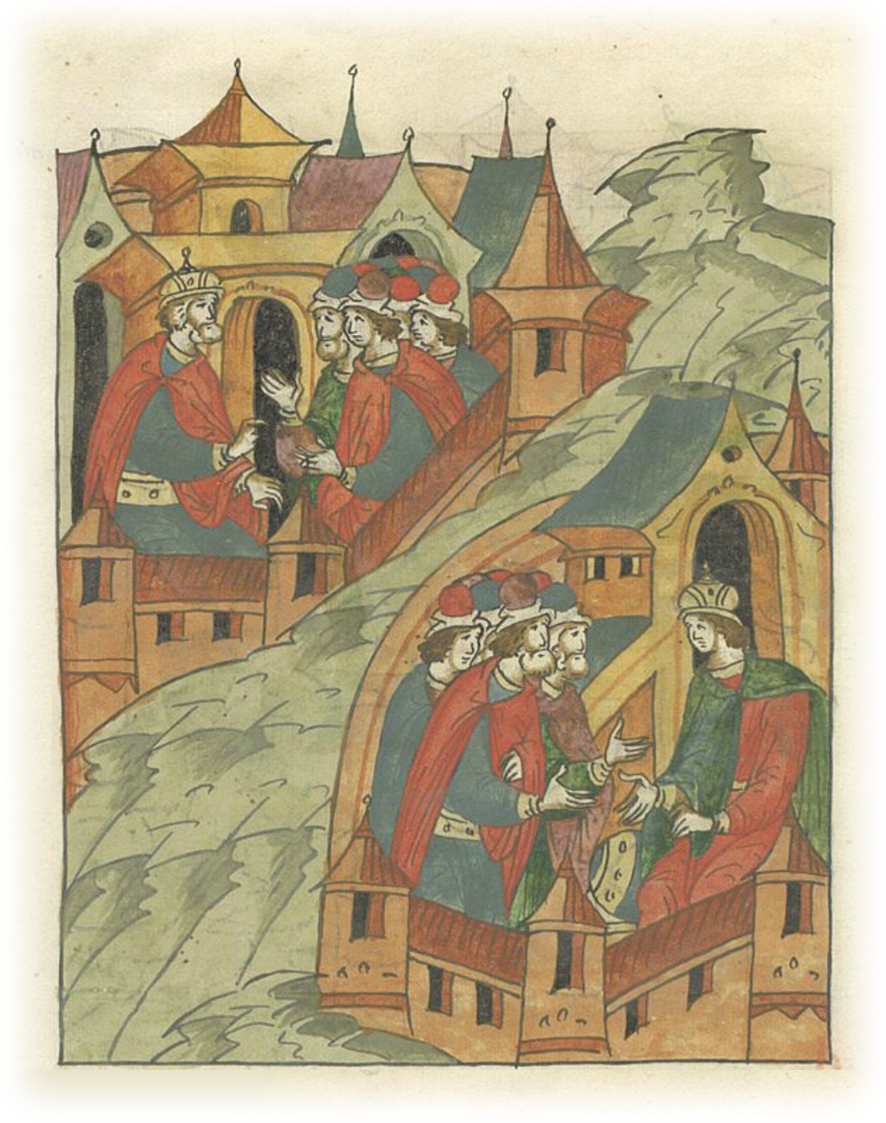 Ругодивские посадники Яким и Захар приезжают в Москву. Воеводы царя Ивана Васильевича Алексей Адашев и Иван Михайлов сообщают им, что государь пожалует их, если сдадут его воеводам помимо Ругодива Вышгород.
