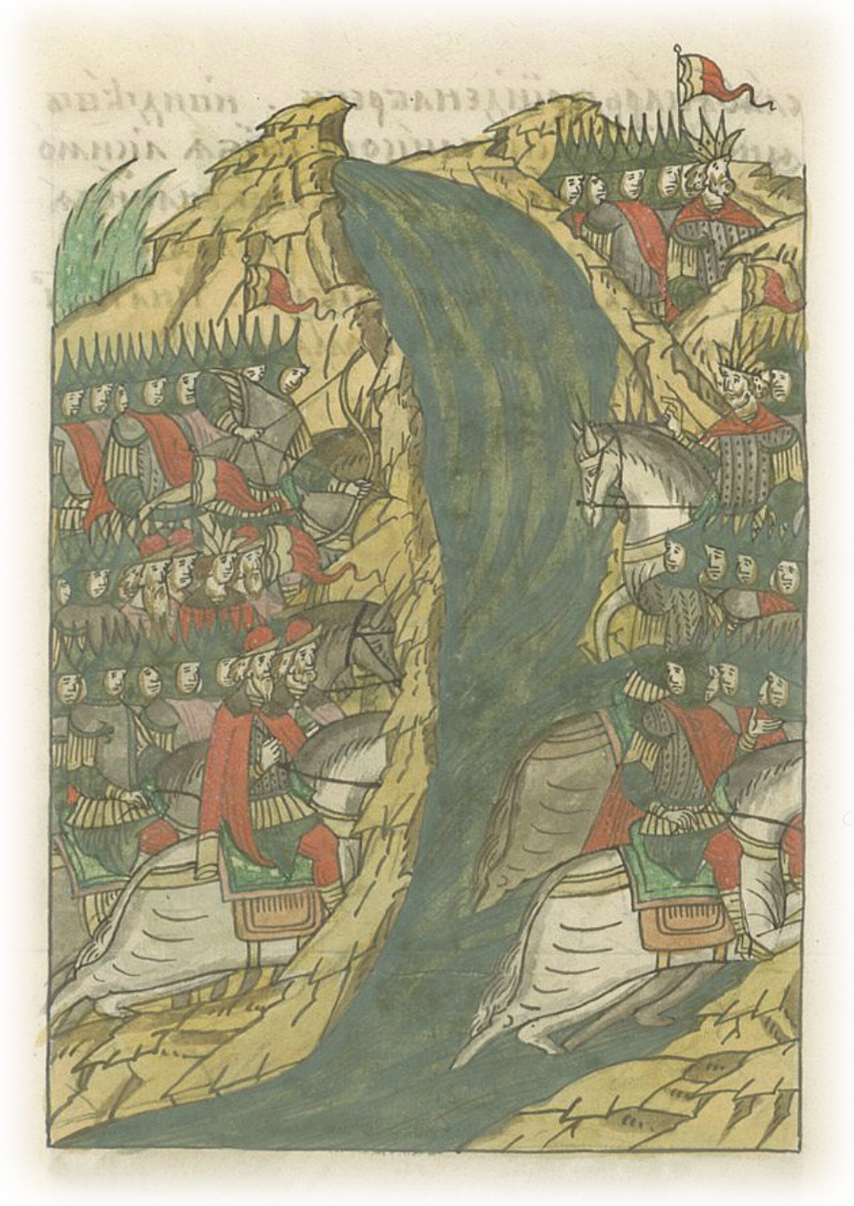 И так начали одолевать христиане татар; татары же, увидев множество полков христианских, побежали за реку. А полки великого князя и всех князей пришли к берегу, и было их многое множество, также и царевича Даньяра, Трегубова сына. И вот, сам царь пришел на берег; и увидели многие полки великого князя словно море колеблющееся, доспехи же на них были начищены и блистали словно серебро, и вооружение сильное, и начали татары от берега помалу отступать.