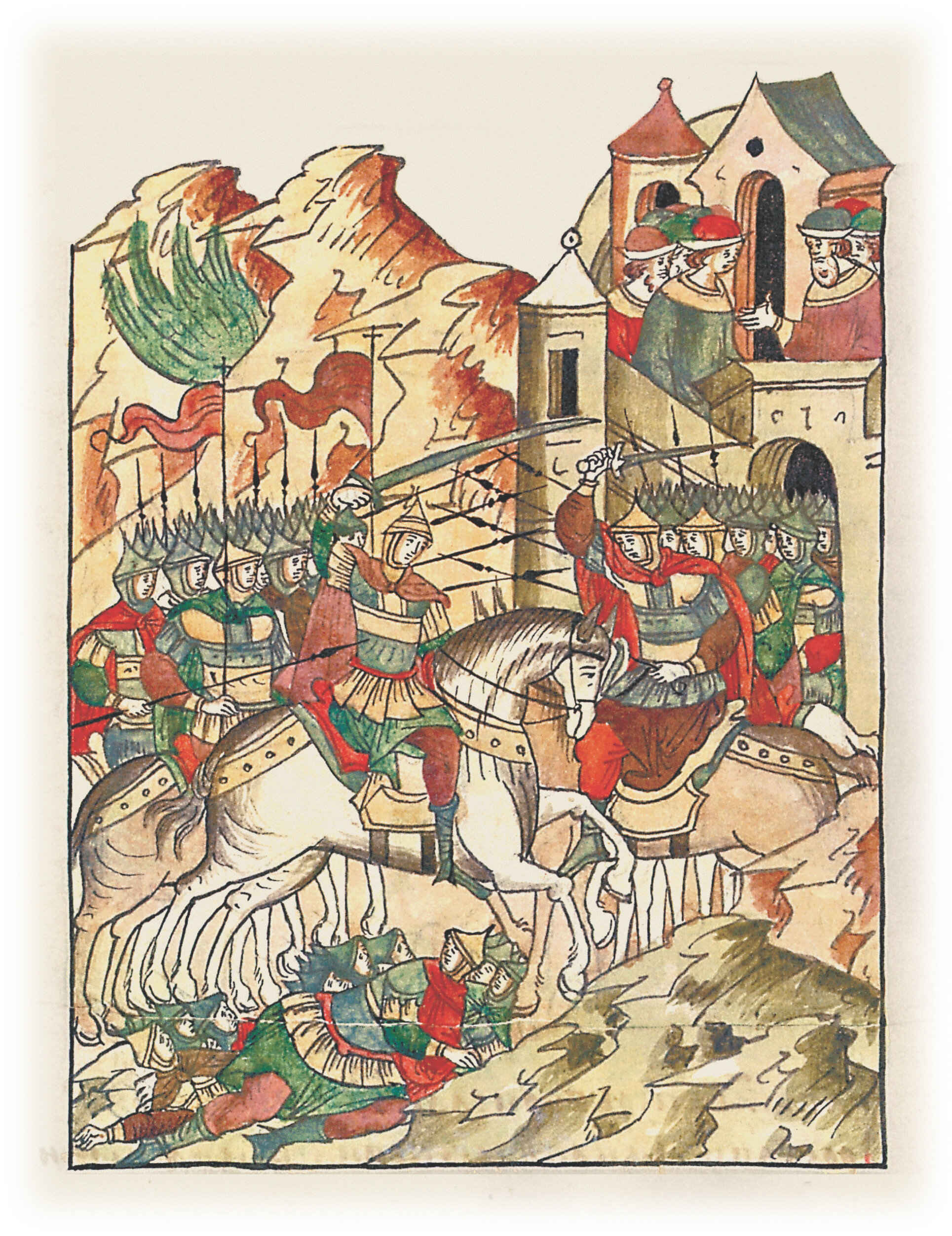 Языки говорят воеводам царя Ивана Васильевича, что магистр окопался большим рвом вокруг города Рындола, бьет из пушек и пищалей и приступает к Рындолу.