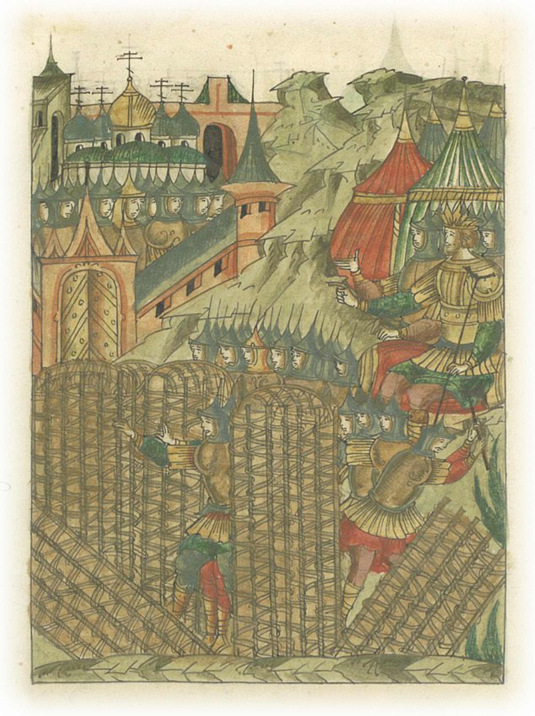 и вскоре повелел туры прикатить к городу всеми силами очень скрытно.