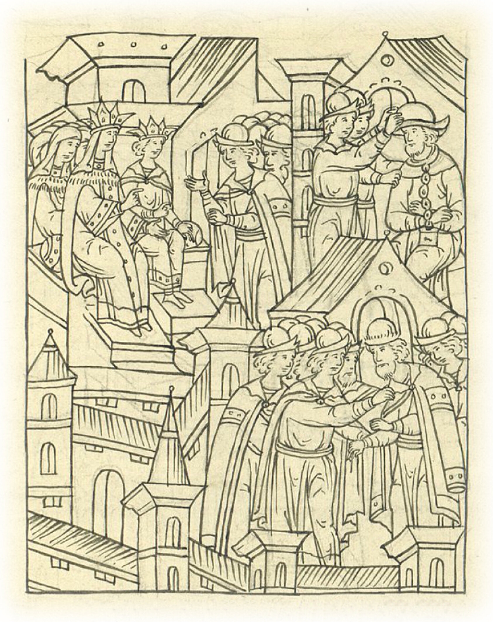 Ругодивские посадники Яким и Захар приезжают в Москву. Воеводы царя Ивана Васильевича Алексей Адашев и Иван Михайлов сообщают им, что государь пожалует их, если сдадут его воеводам помимо Ругодива Вышгород.