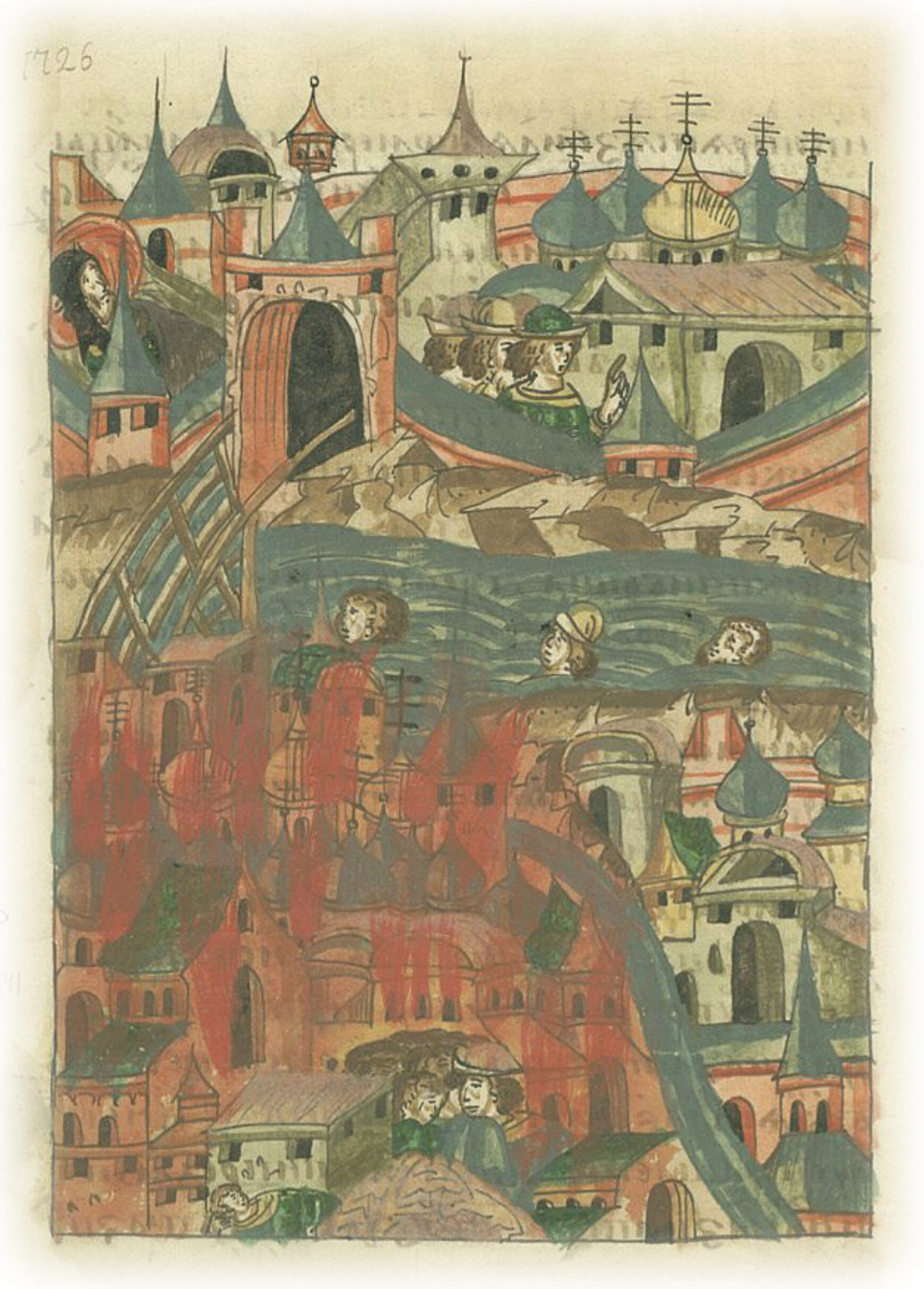 В ту же весну в Великом Новгороде был сильный пожар: выгорел Словенский конец и Плотнический до Федоровского ручья, обгорело 24 церкви, а церковь Святых отцов целиком сгорела; сгорело много христианского имущества, много людей утонуло в Волхове, а некоторые сгорели в огне. В ту же весну преставился новгородский посадник Иван Богданович в иноческом чине.