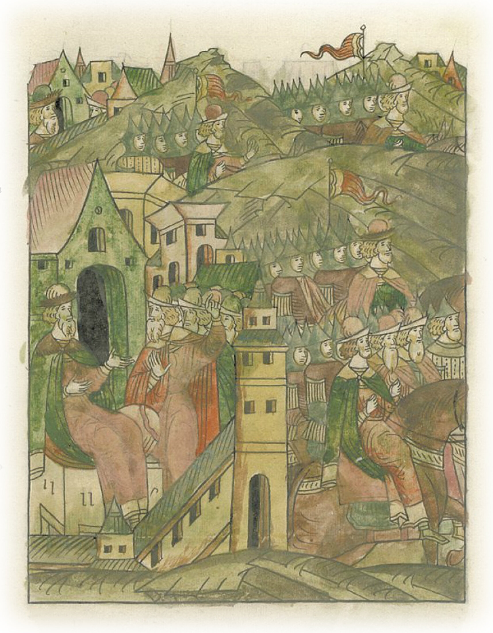 Языки говорят воеводам царя Ивана Васильевича, что магистр окопался большим рвом вокруг города Рындола, бьет из пушек и пищалей и приступает к Рындолу.