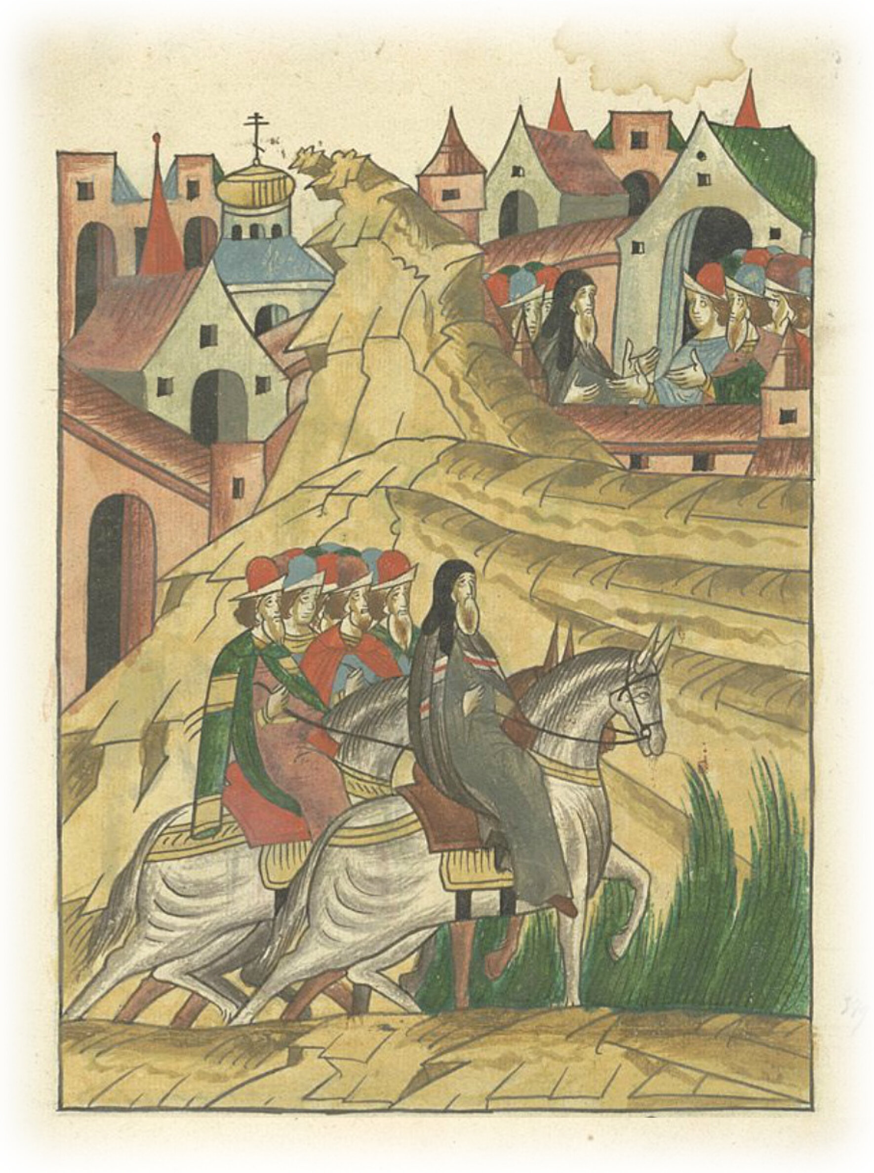 Пермский епископ Стефан Храп идет в Новгород Великий.