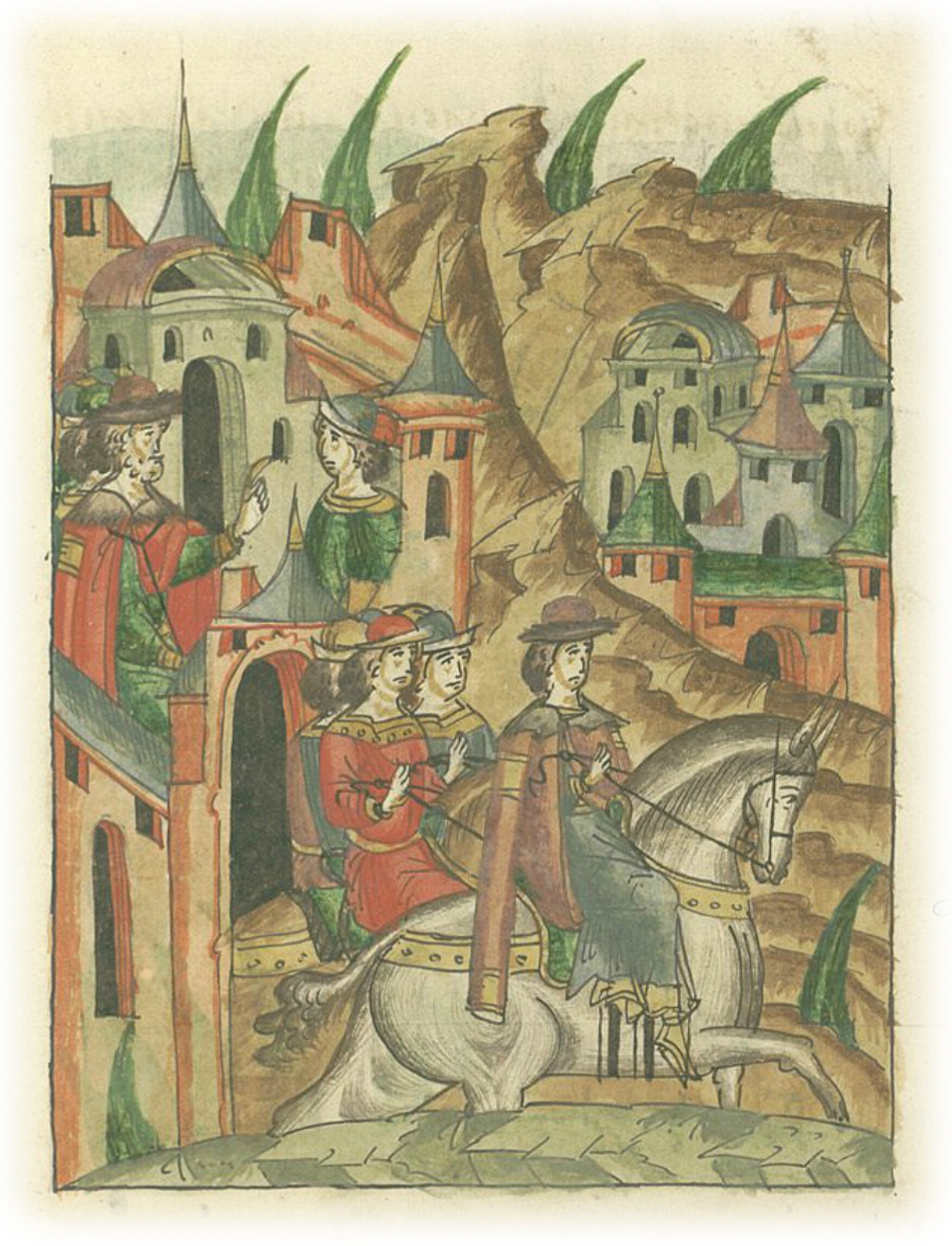 Ругодивские посадники Яким и Захар приезжают в Москву. Воеводы царя Ивана Васильевича Алексей Адашев и Иван Михайлов сообщают им, что государь пожалует их, если сдадут его воеводам помимо Ругодива Вышгород.