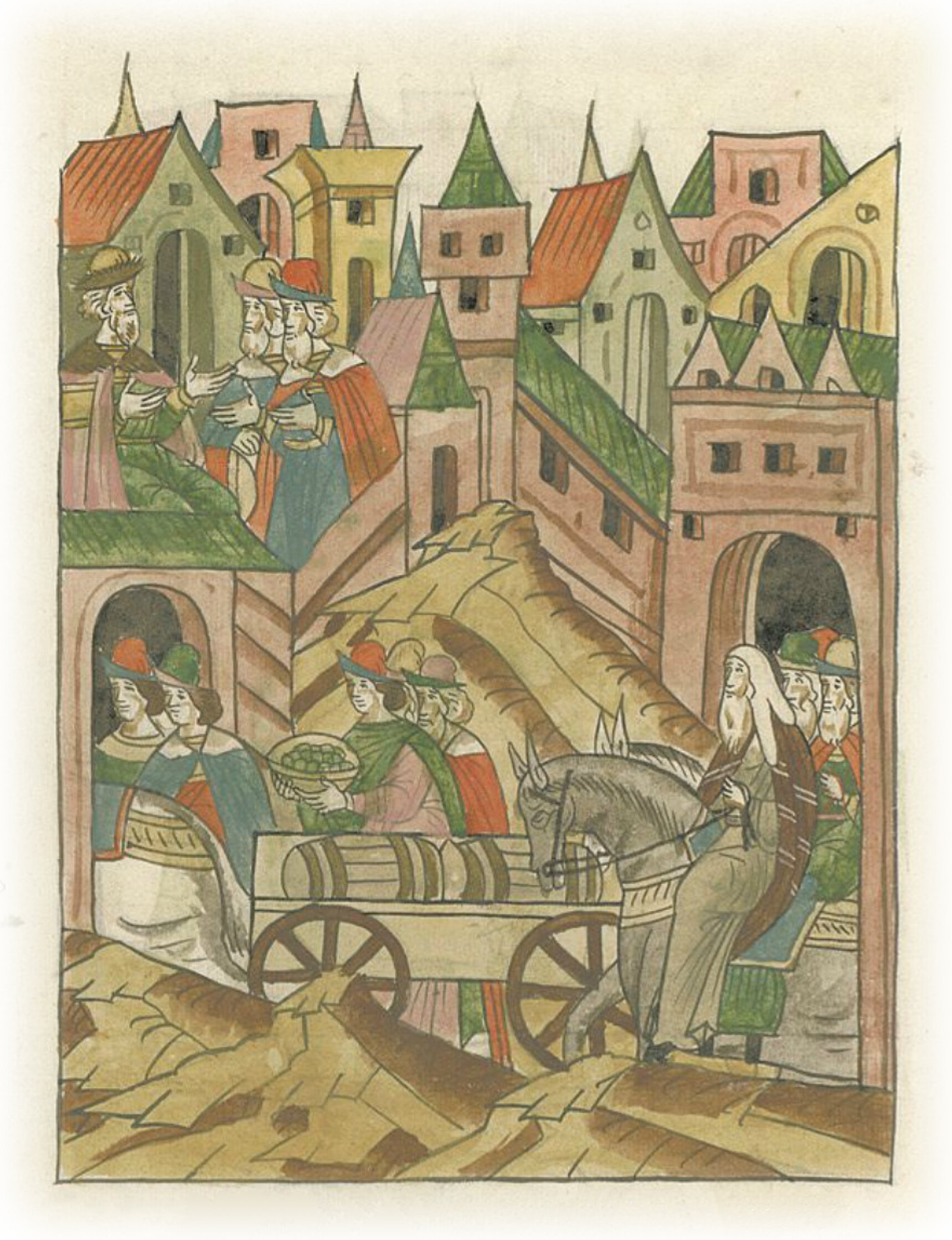 архиепископ же ехал за ним с великой честью и с вином. А даров владычных: три постава фландрского сукна, сто золотых монет, клык моржа; а на проводы – бочка вина красного, а другая – белого.