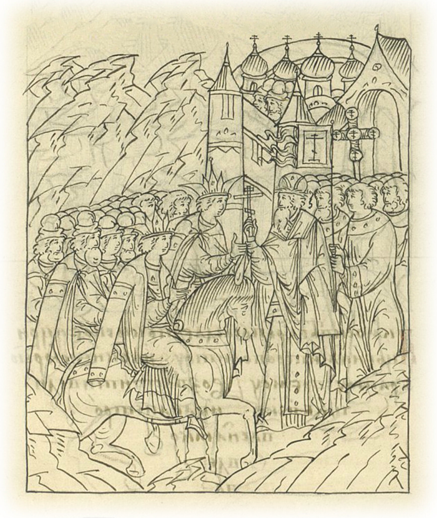 Царь же благочестивый пошел в Коломну, и встретил его владыка Феодосий с освященным собором с крестами и со всем народом, и благодарение воссылал Богу об избавлении нас от нечестивых.