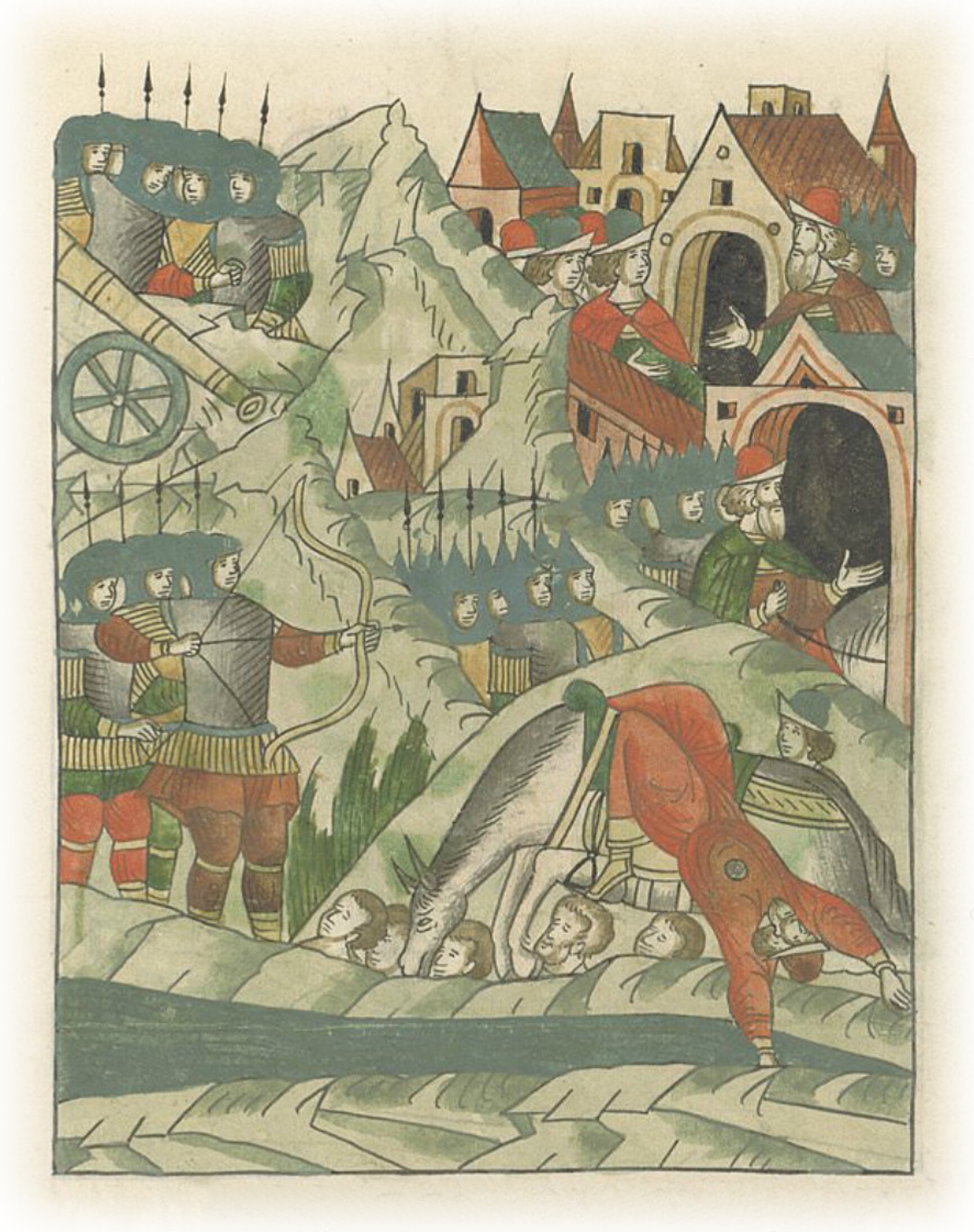 Языки говорят воеводам царя Ивана Васильевича, что магистр окопался большим рвом вокруг города Рындола, бьет из пушек и пищалей и приступает к Рындолу.