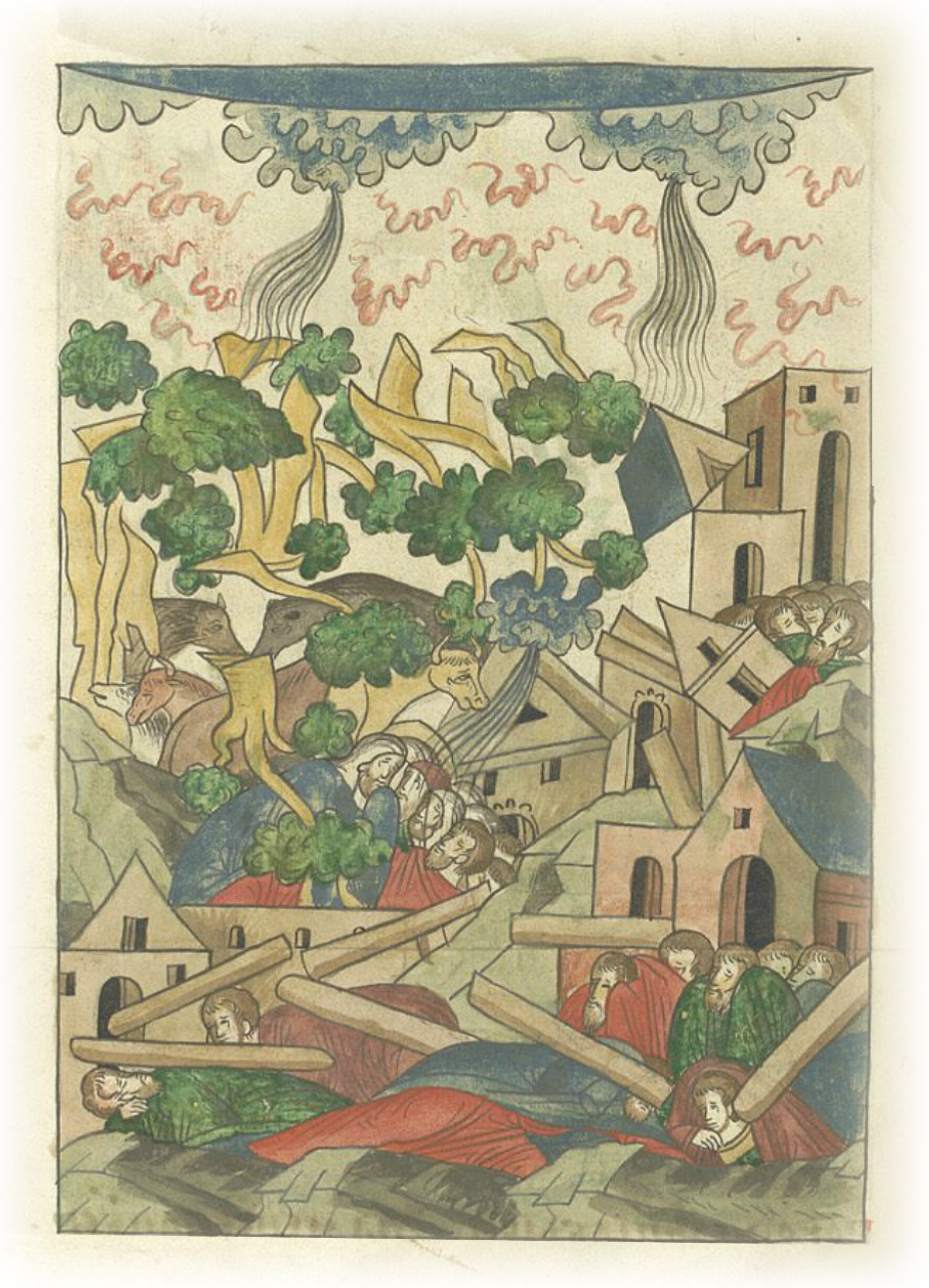 В 6810 (1302) году. Была буря великая очень, и много пакости было людям: хоромы рвало, и леса ломило, и людей и скот побило.