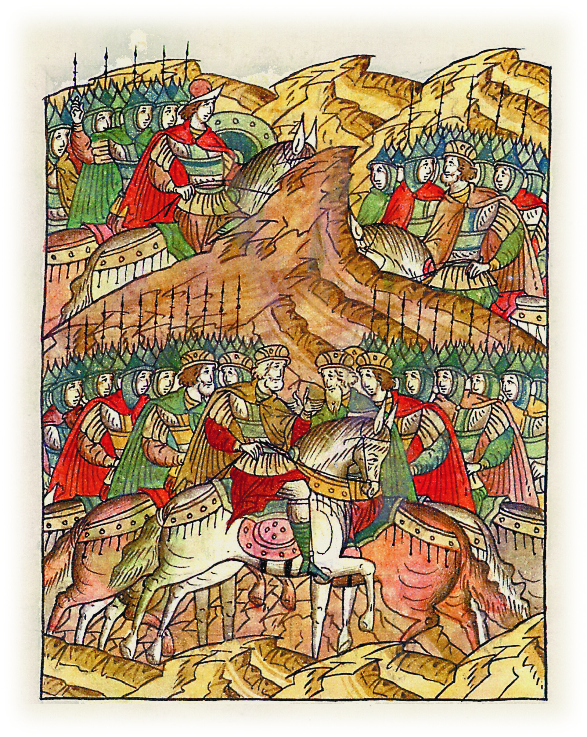 Пришла же тогда сила многая, и галичское воинство с воеводой князя их, и из Торского князь Рюрик, сын Ростислава, с князем Владимиром Андреевичем и с князем Васильком Юрьевичем, с берендеями, с ковуями, с черными клобуками, с долматами, с торками, с печенегами; и соединились с Мстиславом Изяславичем и с Ростиславом Мстиславичем, и с Ярославом Изяславичем, и с Ярополком Андреевичем, и стало воинство их – множество бесчисленное.