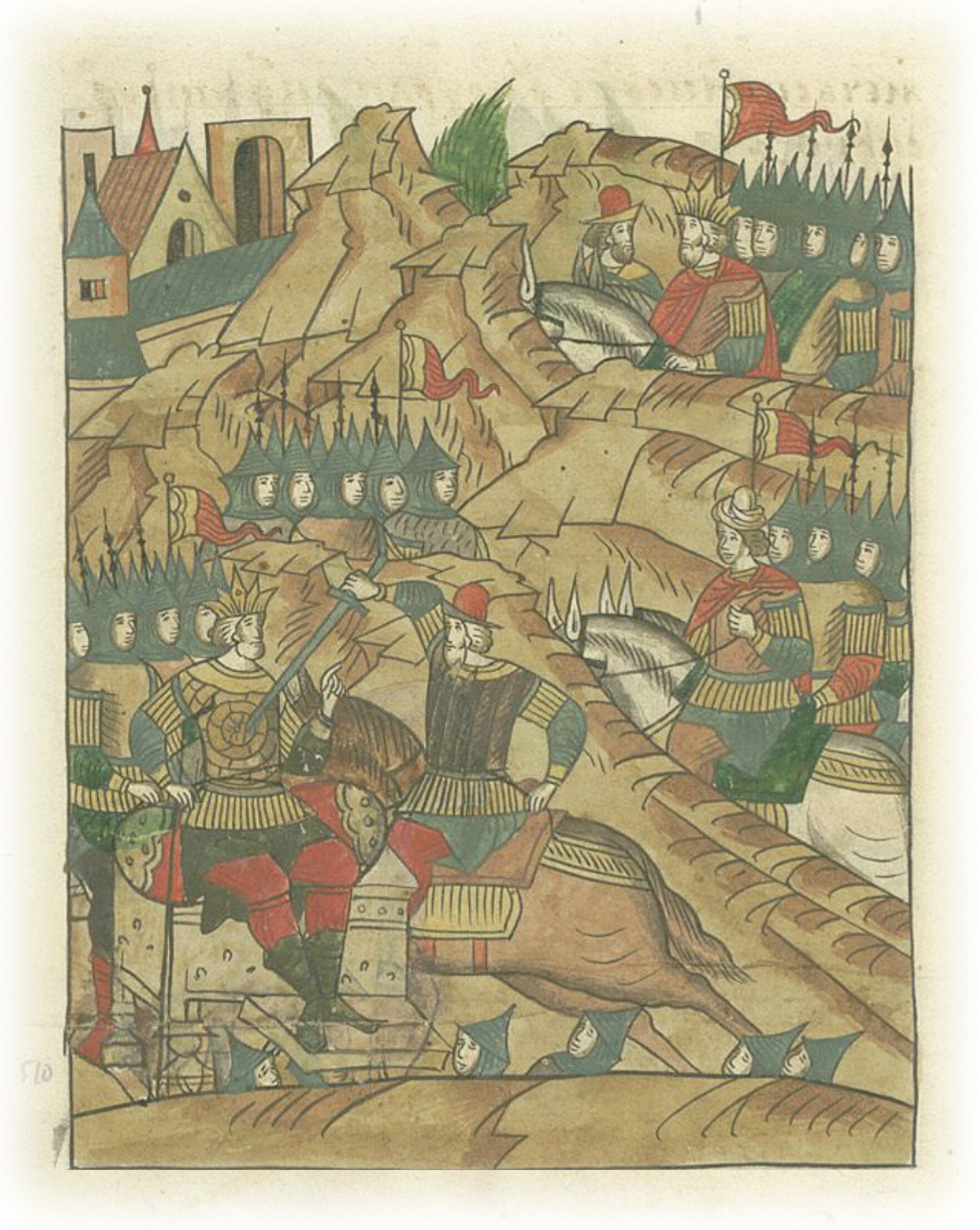 Языки говорят воеводам царя Ивана Васильевича, что магистр окопался большим рвом вокруг города Рындола, бьет из пушек и пищалей и приступает к Рындолу.