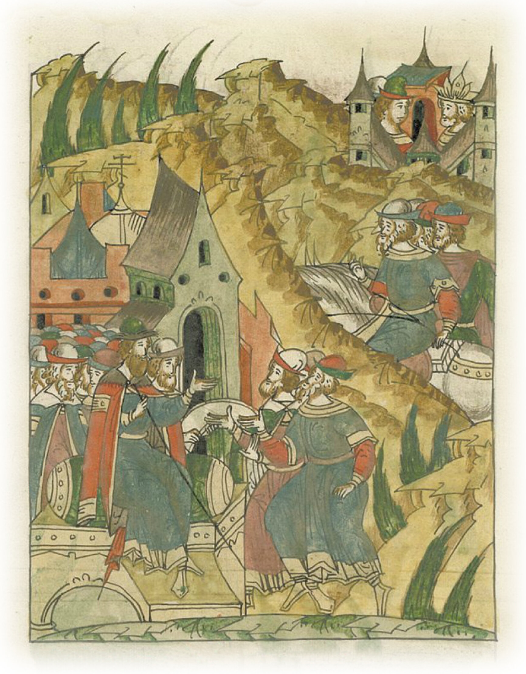 Ругодивские посадники Яким и Захар приезжают в Москву. Воеводы царя Ивана Васильевича Алексей Адашев и Иван Михайлов сообщают им, что государь пожалует их, если сдадут его воеводам помимо Ругодива Вышгород.