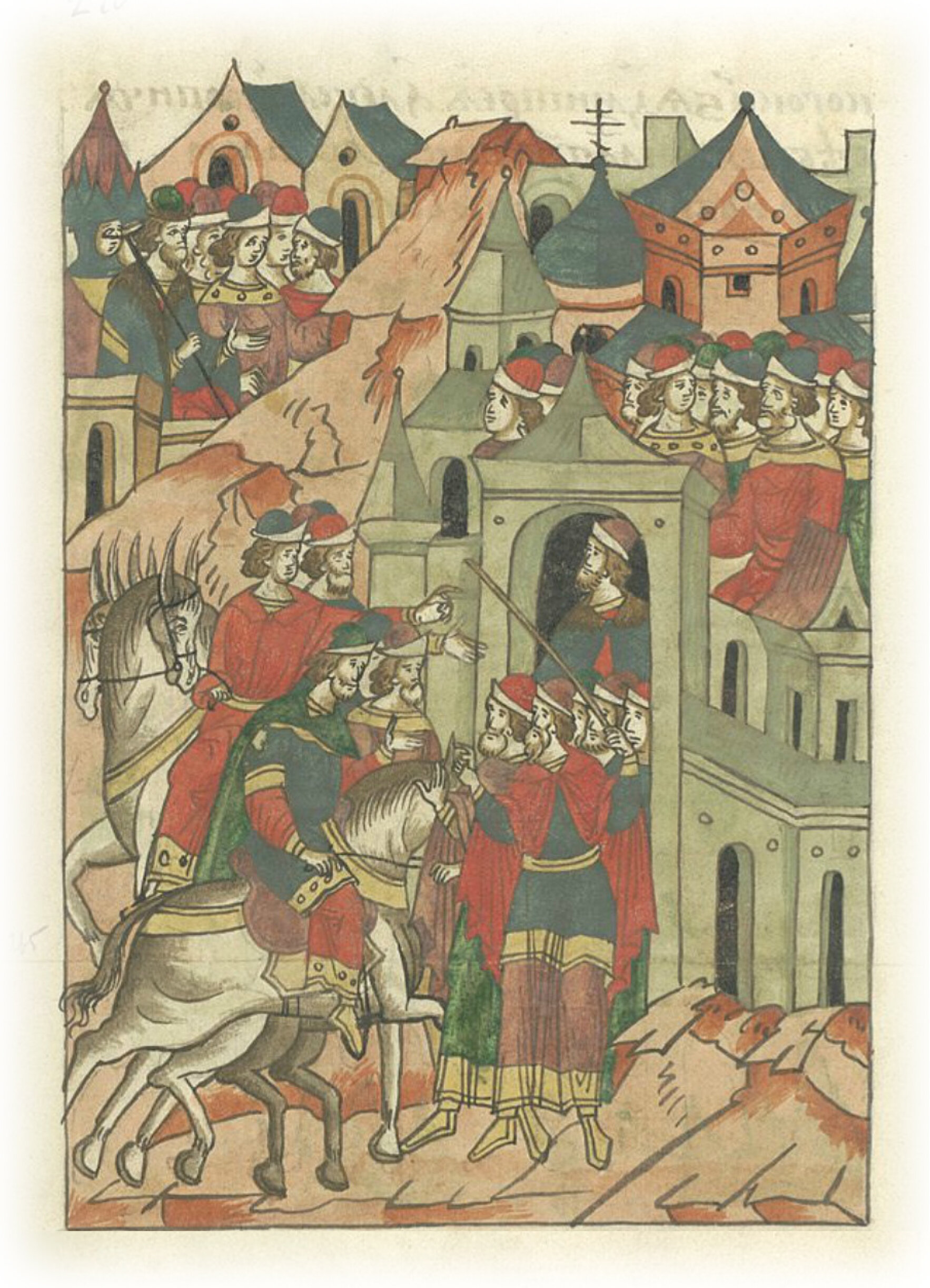 Посадники Семен Михайлович и Яков Дмитриевич не пускают в Торжок наместников князя Дмитрия Александровича.