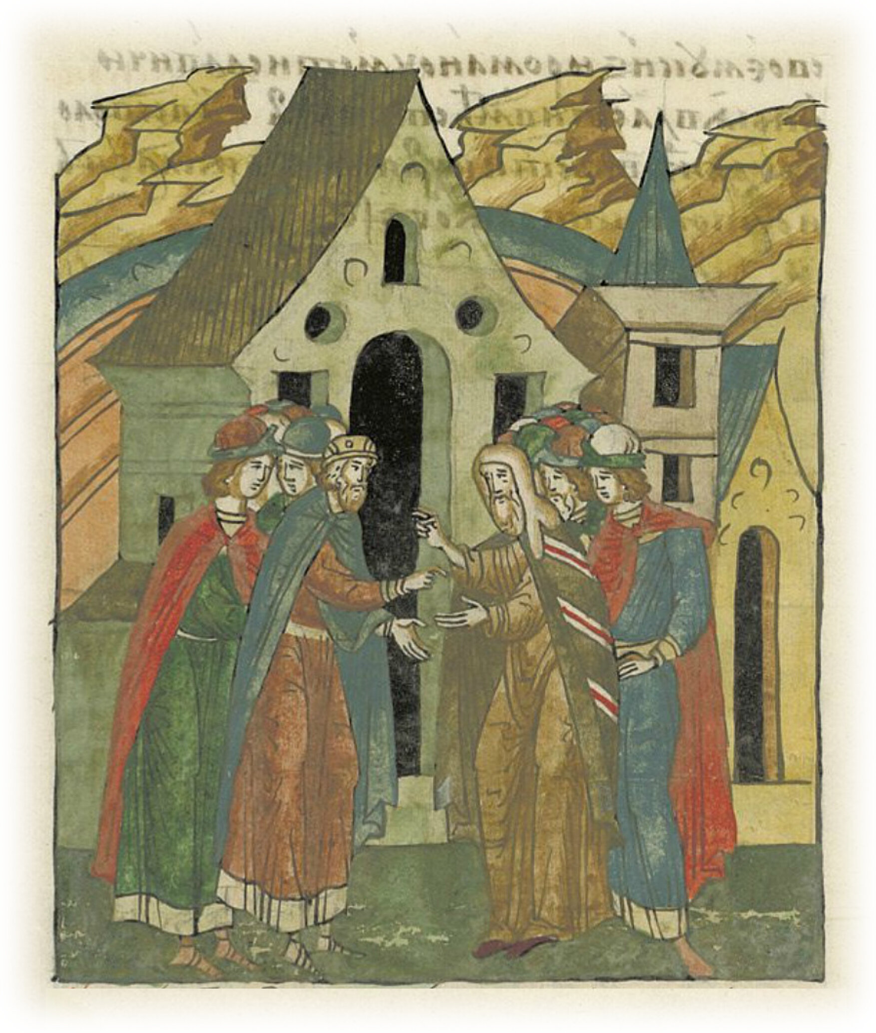 Великий Киевский князь Рюрик Ростиславич рассказывает своему духовному отцу Никифору, митрополиту Киевскому и всея Руси, о своей распре с князем Всеволодом Юрьевичем. Митрополит просить его прекратить вражду и отдать князю Роману Ростиславичу другие волос