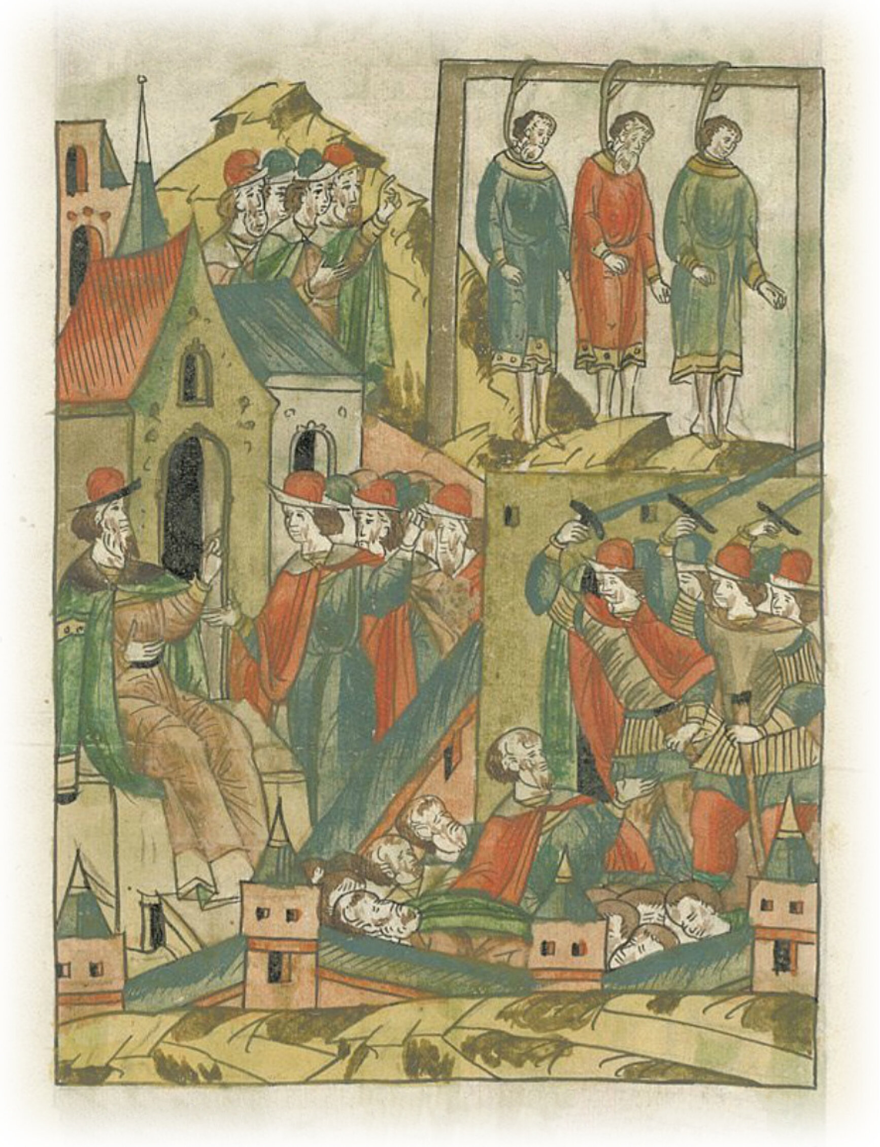 О переводе новгородцев. В ту же зиму послал великий князь, и привели из Новгорода в Москву больше 7000 новгородских мужей, потому что хотели они убить новгородского наместника Якова Захарьича; а многих других заговорщиков Яков открыл и перевешал.