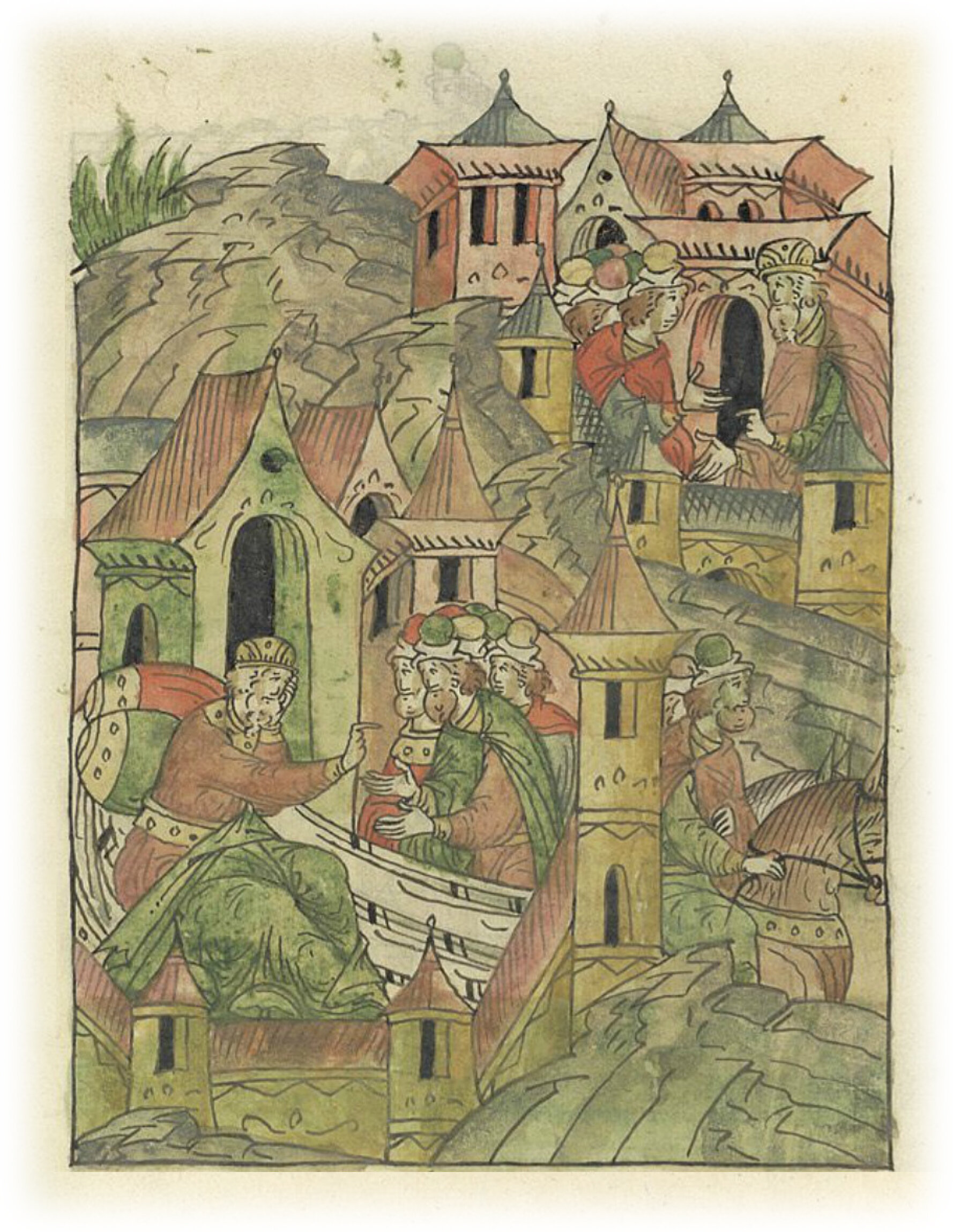 Ругодивские посадники Яким и Захар приезжают в Москву. Воеводы царя Ивана Васильевича Алексей Адашев и Иван Михайлов сообщают им, что государь пожалует их, если сдадут его воеводам помимо Ругодива Вышгород.