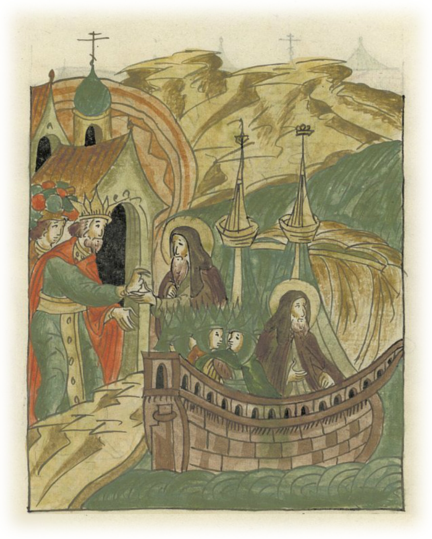 О Савве Сербском. Царь Кал Иван Ватац дает Савве свой корабль со всем необходимым и с вооруженными воинами, чтобы они проводили его до Святой горы.