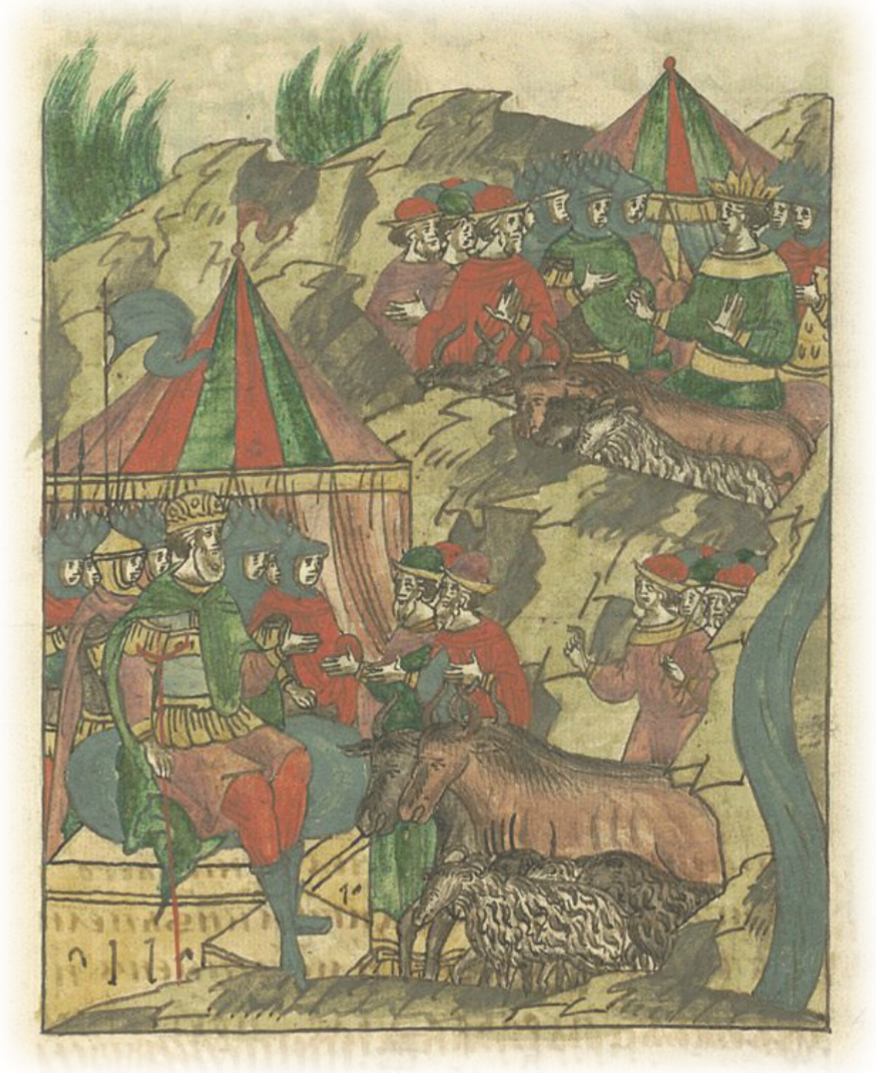 Царь Темир-Кутлуй, взяв три дня на размышления, отправляет князю Витовту много скота.