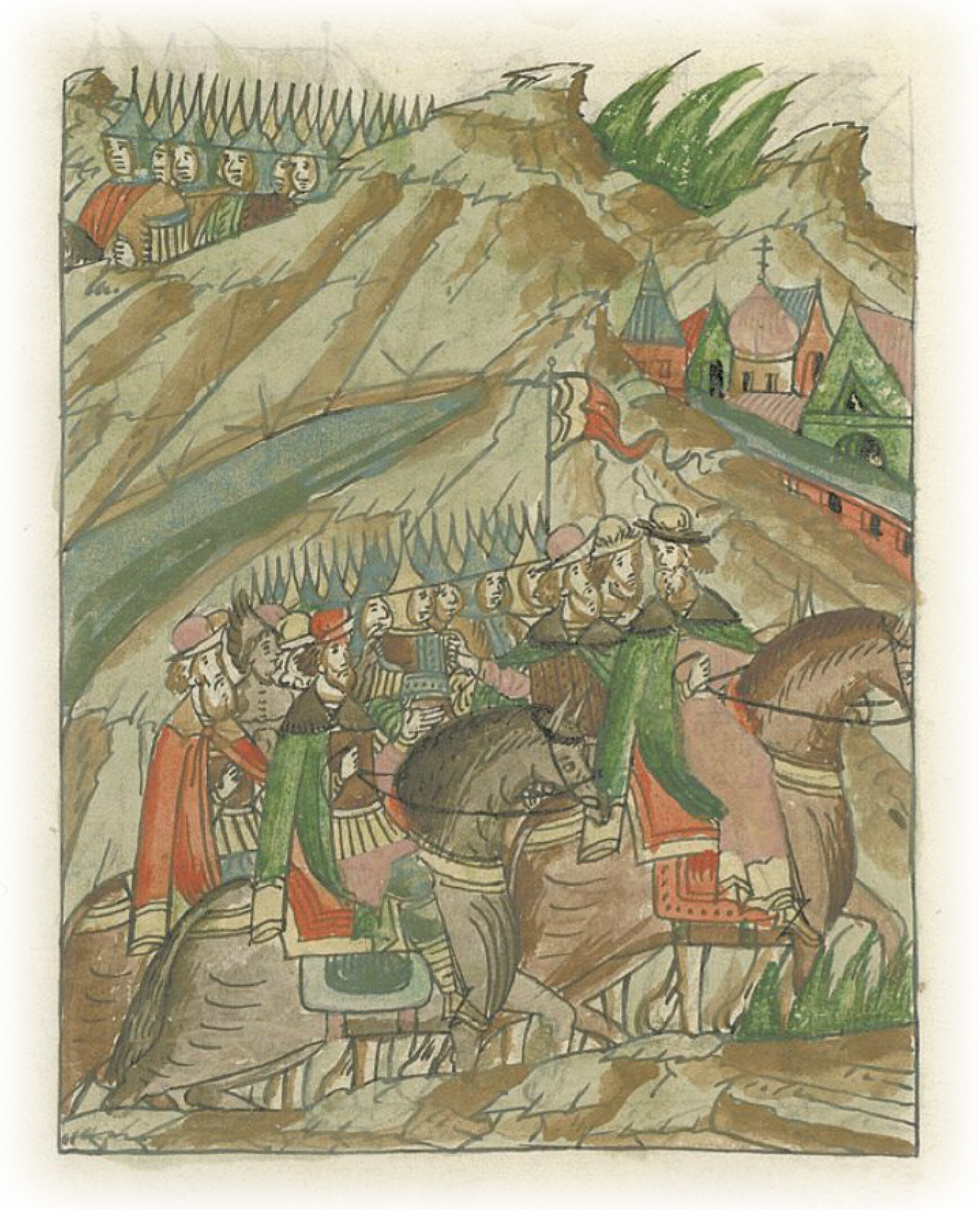 Великий князь Иван Васильевич с сыном, братьями и всеми воеводами идет к Боровску, решив дать там бой татарам.