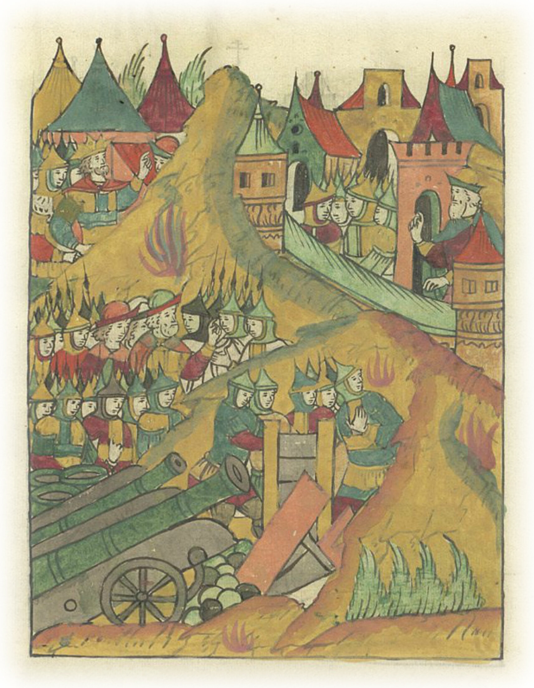 Царь же велел всем людям туры делать и градобитные орудия для приступа, а хотел со всеми людьми со всех сторон к городу приступать;