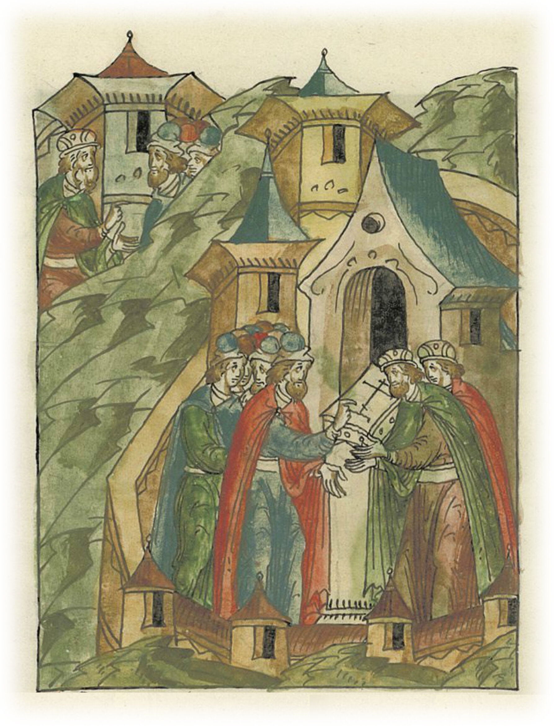 Ругодивские посадники Яким и Захар приезжают в Москву. Воеводы царя Ивана Васильевича Алексей Адашев и Иван Михайлов сообщают им, что государь пожалует их, если сдадут его воеводам помимо Ругодива Вышгород.