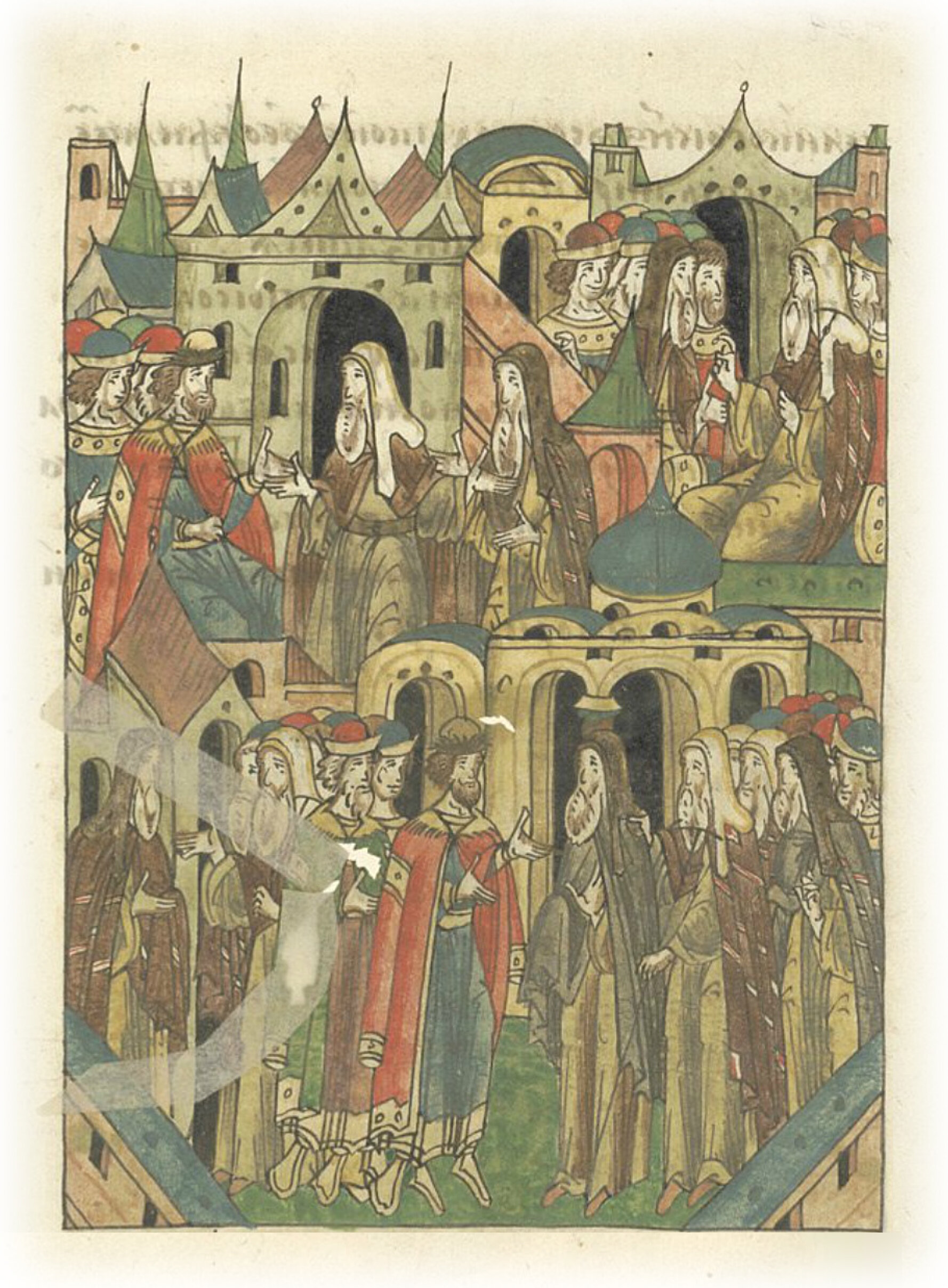 Митрополит всея Руси Киприан дает великому князю Михаилу Александровичу Тверскому своего протодьякона Арсения, который безуспешно пытается примирить князя с владыкой Евфимием.