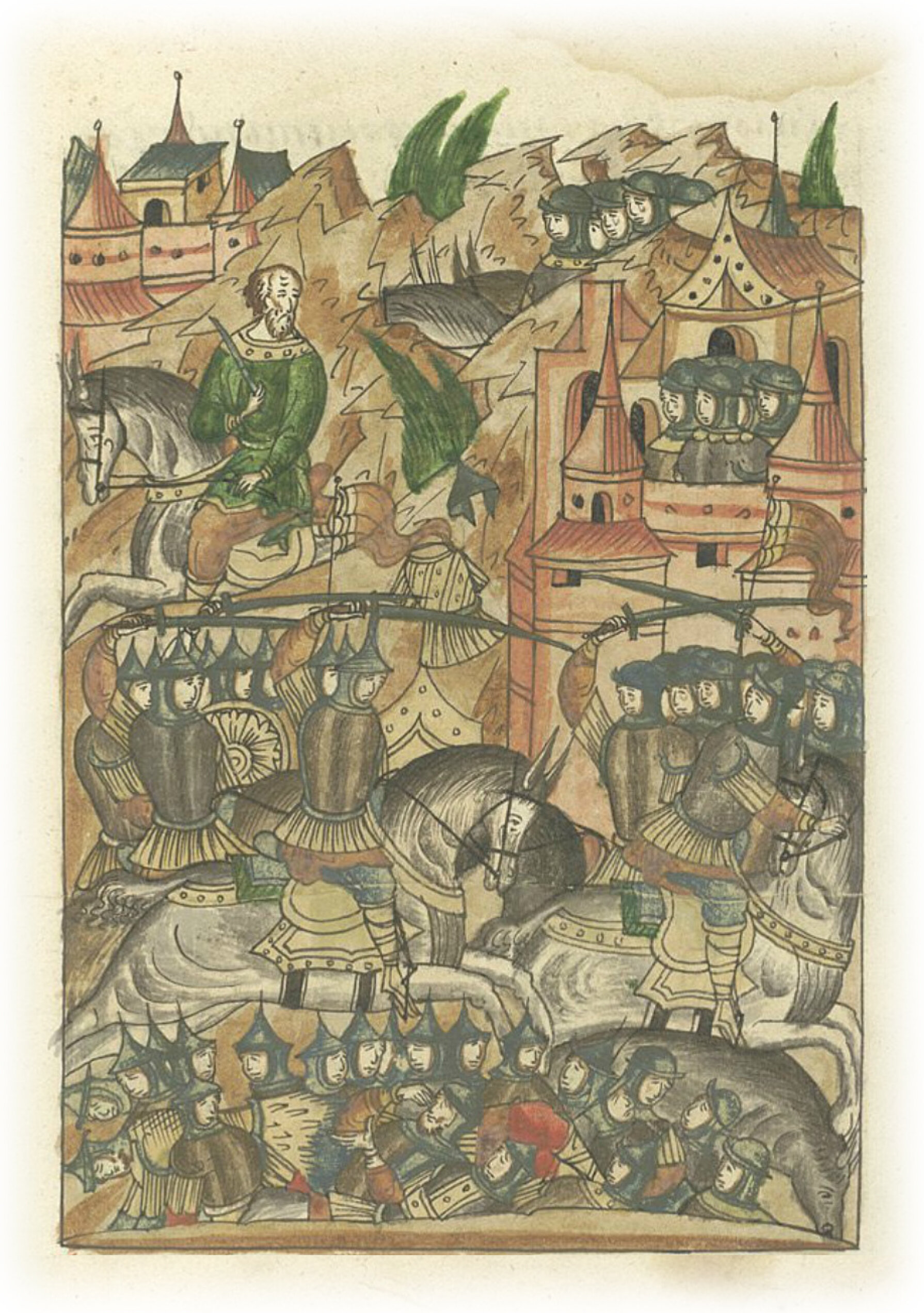 И вышли против них немцы, и была сеча жестокая. И одолели они псковичей. Много было убито у них лучших мужей и посадников именитых: Корман, Кирей, Варфоломей, Алферий и много иных бояр, и пало бесчисленное множество добрых людей. А Данило, посадник псковский, обрезав на себе доспехи, еле убежал. И велико тогда было унижение псковичей.