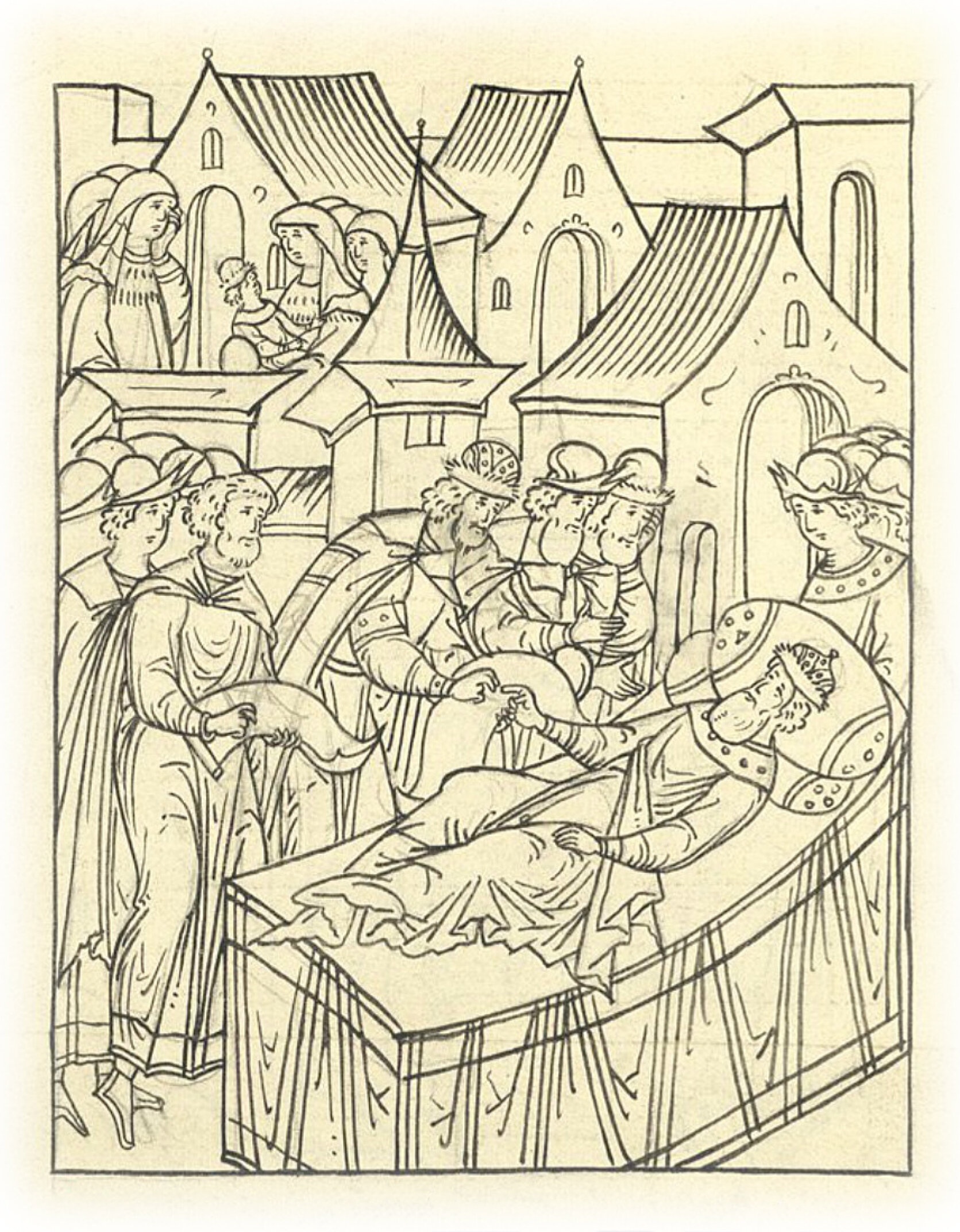 И начал князь великий думать с боярами, а тогда были у него бояре: князья Василий Васильевич Шуйский, Михайло Юрьевич, и дворецкий его тверской Иван Юрьевич Шигона, и дьяки его Меньшой Путятин да Федор Мишурин. И начал князь великий говорить им о своем сыне о князе Иване и о своем великом княжении, и о своей духовной грамоте, поскольку сын его еще мал, только трех лет на четвертый, и как управляться царству после него.